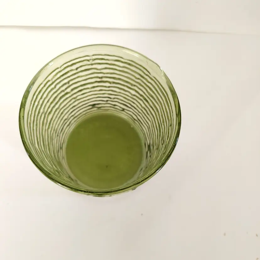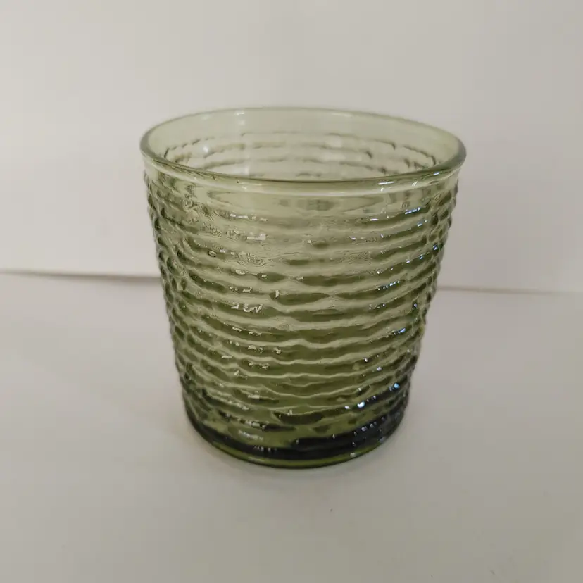 Anchor Hocking Soreno Avocado Green textured glass tumbler. 1966-70. 3.25 inches high.