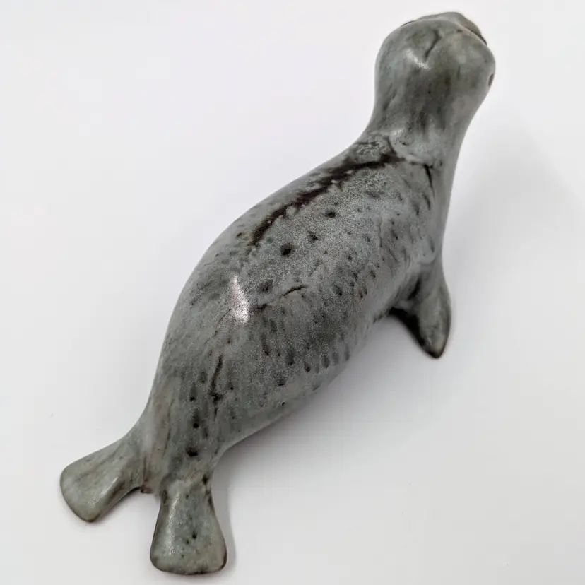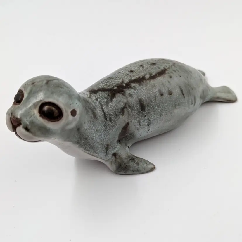 Adorable studio pottery baby seal figure by Andersen Design Studio. The glaze has created beautiful texture and colors. Signed AD on the bottom.