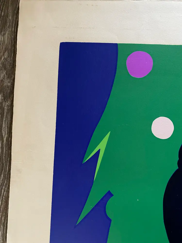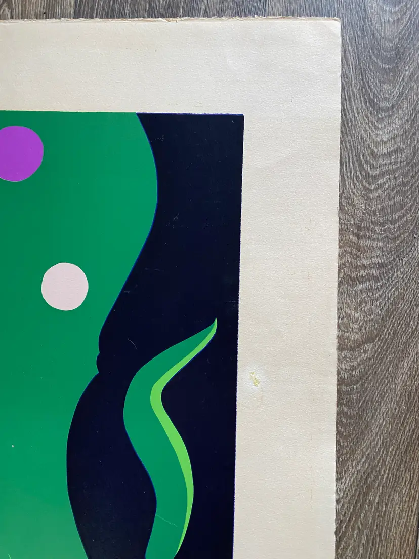 Andre Verdet "Don Quixote" serigraph - beautiful condition - 20 wide x 26 tall - inner art measures 12 wide 20 tall - green black and blue with purple and white dots - hard to find prints