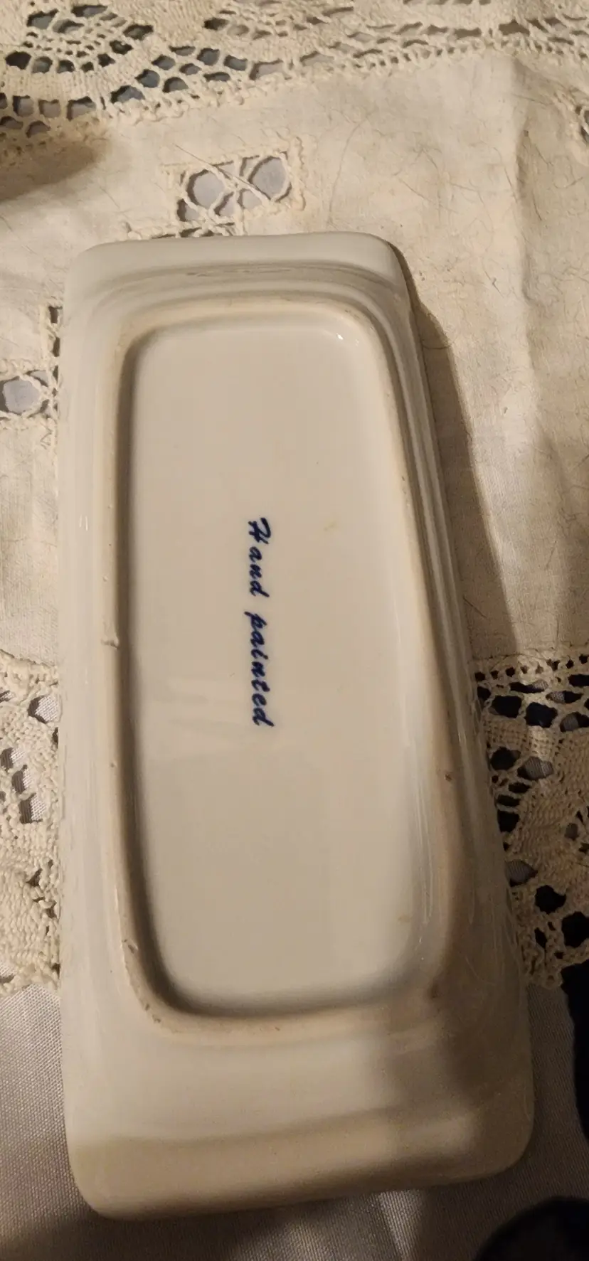 Porcelain oil and vinegar cruet set with stoppers from Thailand. The set is in great condition. There are a couple little dings on the bottom of the cruet. Pictures included.