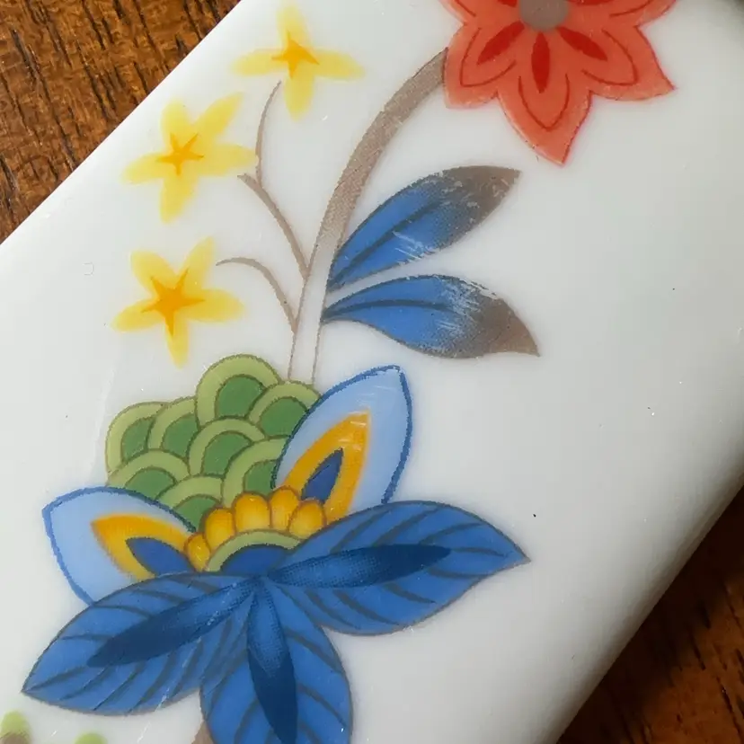Gorgeous floral pattern on porcelain. Some scuffing on transfer. See photo
