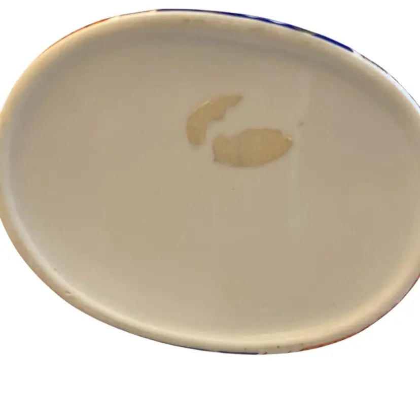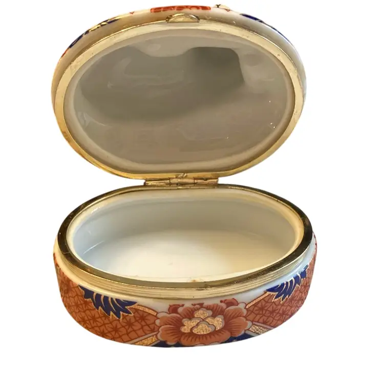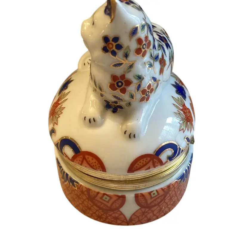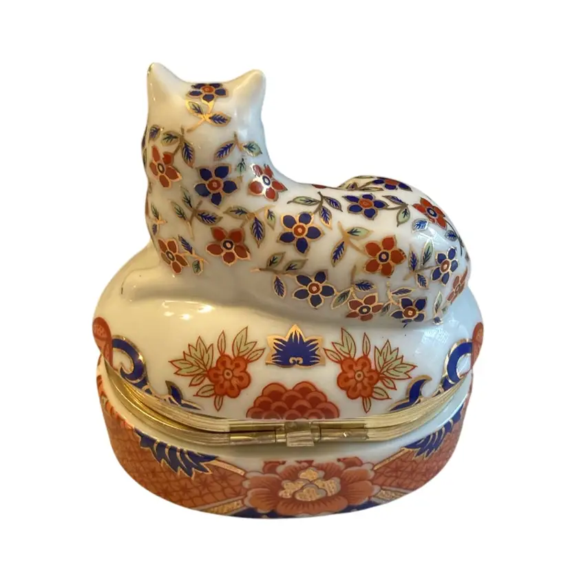 3.5” x 3.5” beautiful cat trinket box- oranges, reds, blue and black on white