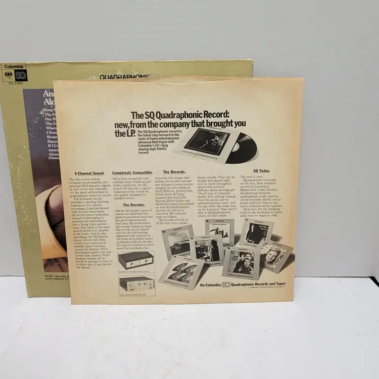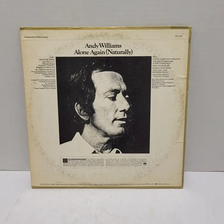 Andy Williams Quadrophonic Alone Again Vinyl Record 1972 Untested Sold As Art