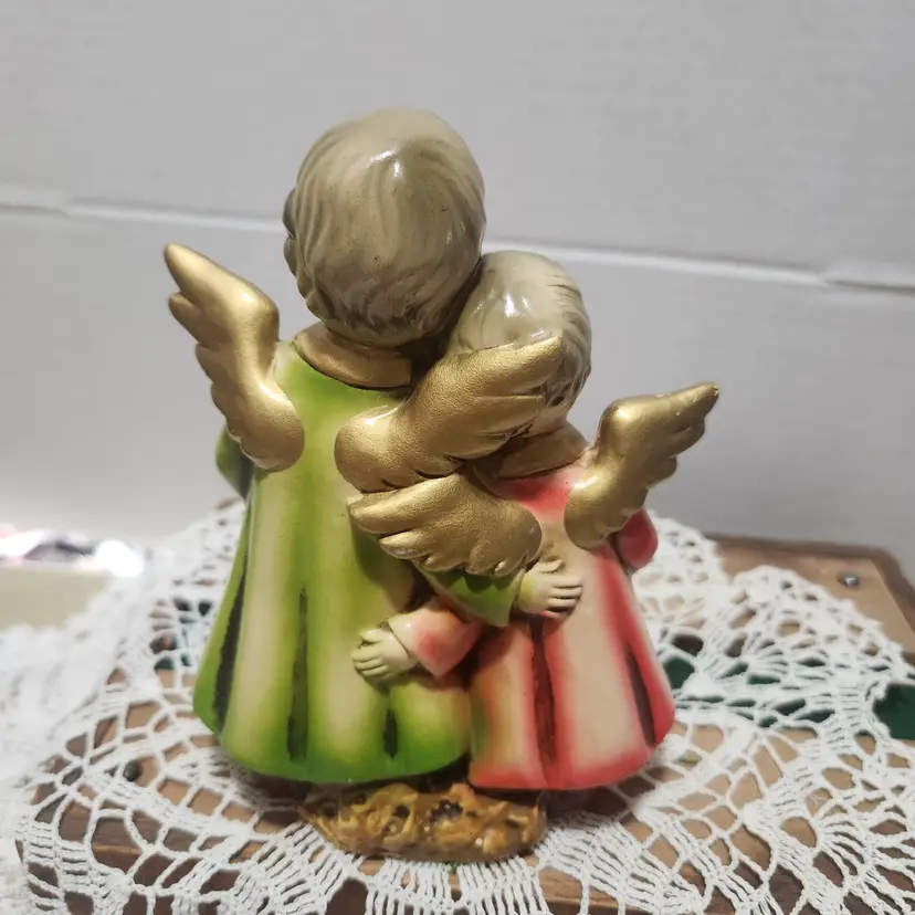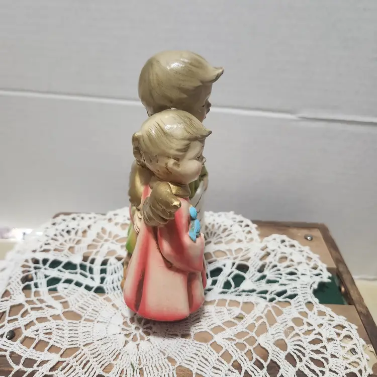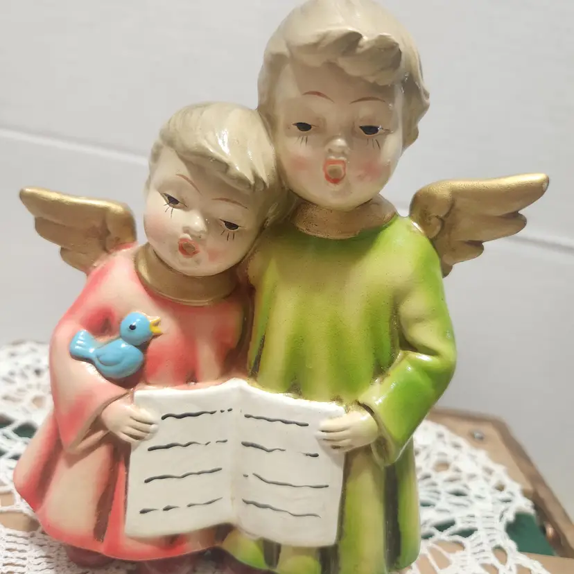 Sweet boys, arm in arm they are singing Christmas carols. And look at that little birdie! No chips or cracks 6 inches
