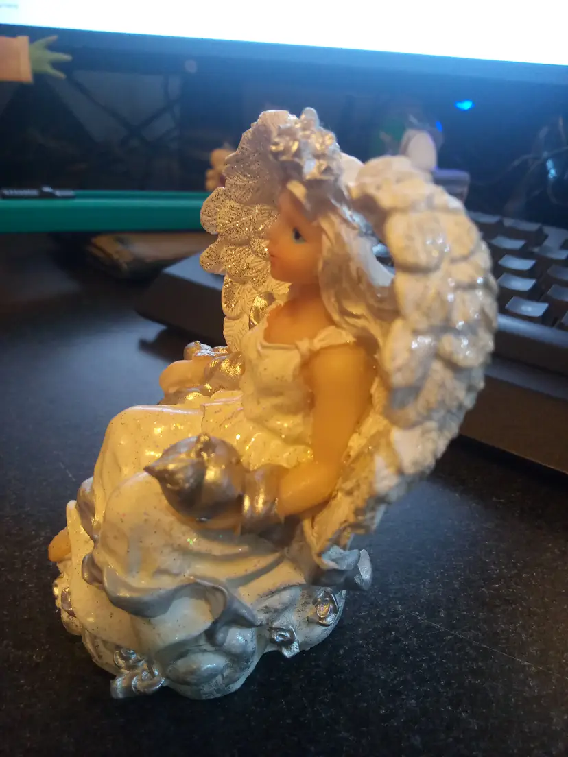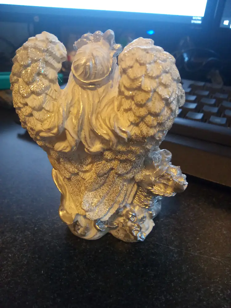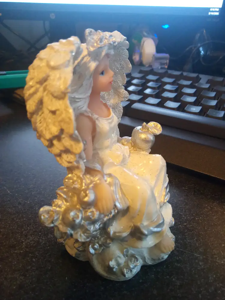 collectible angel figurine from K's Collection, featuring white and silver glitter details