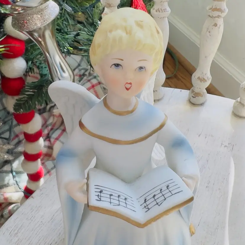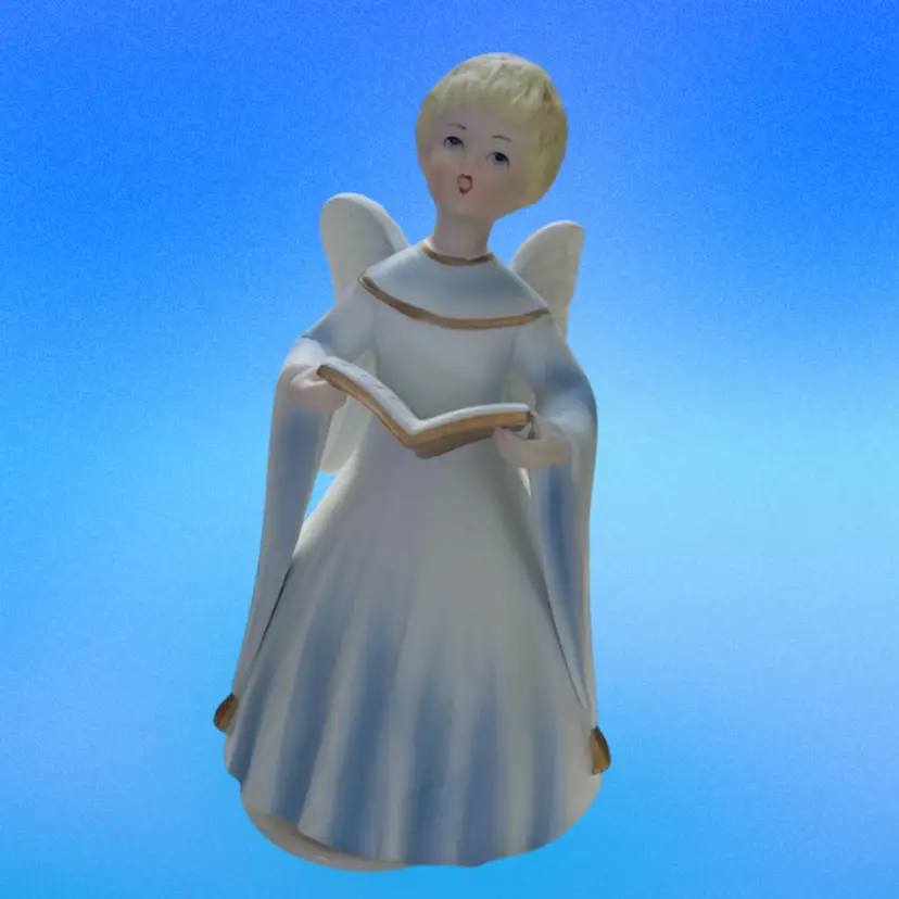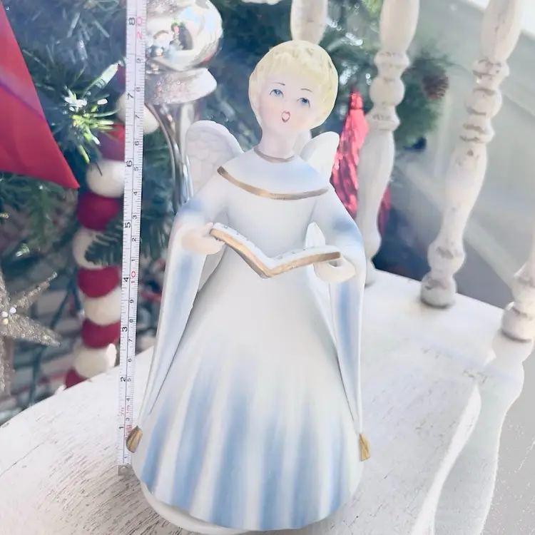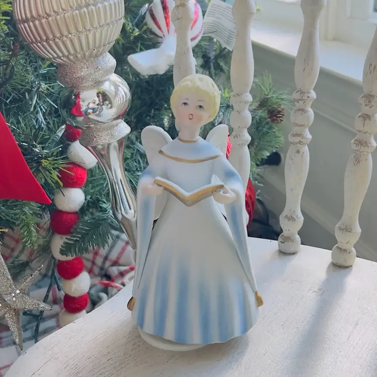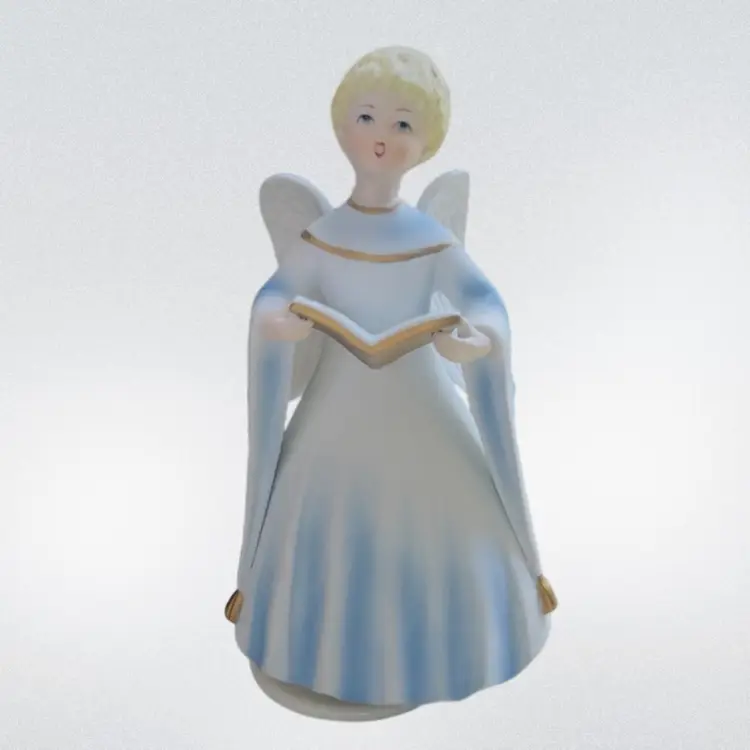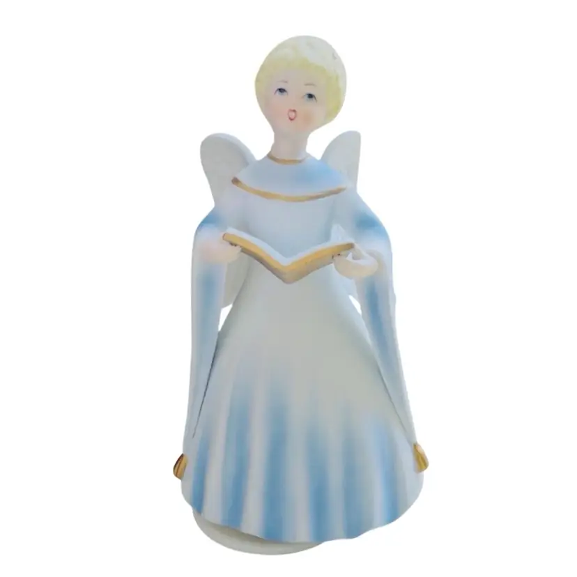 Angel Musical Figurine Schmid Porcelain Music Box Plays Silent Night Japan