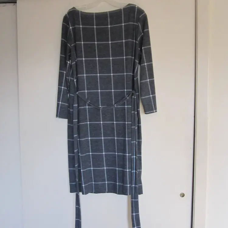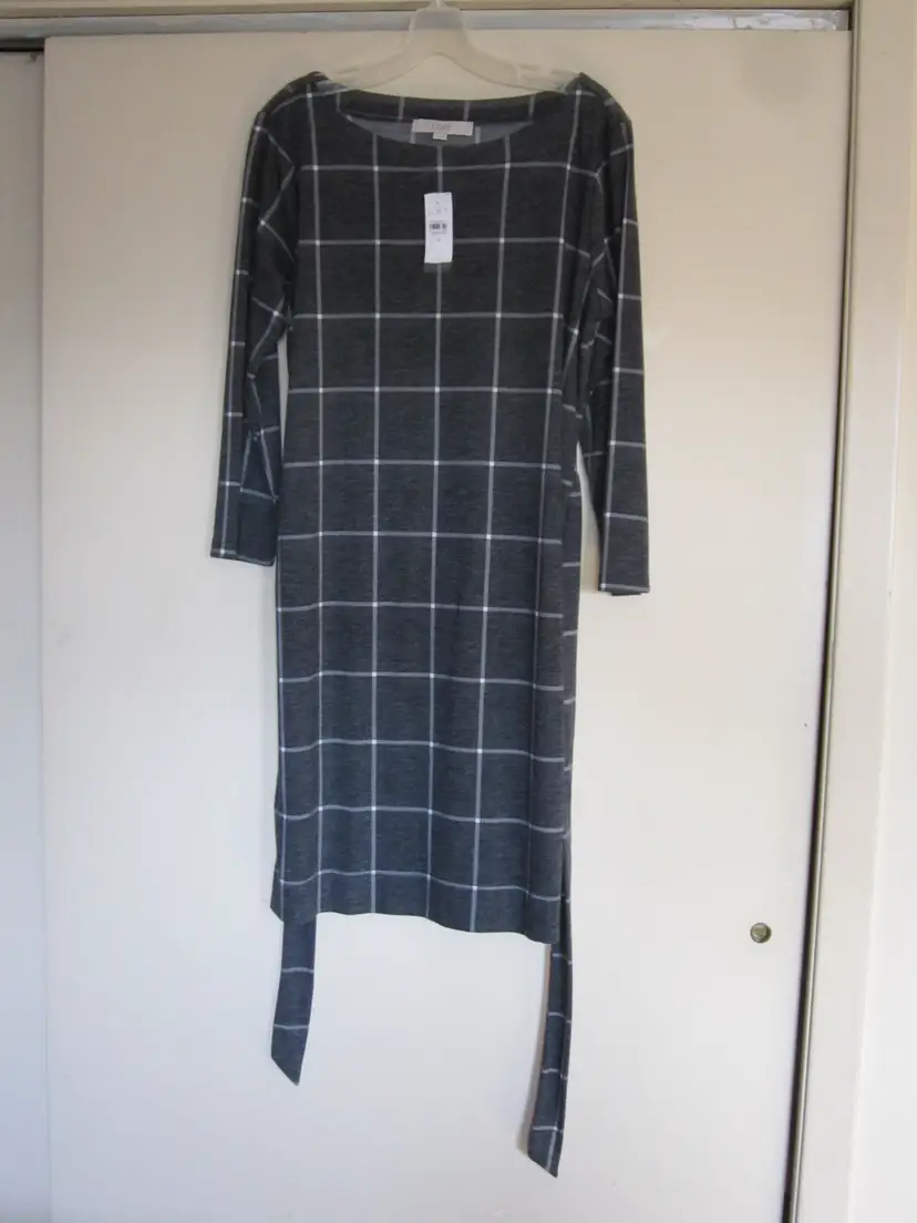 This is a brand new with tags, LOFT, size Women's Medium, Gray and White Windowpane, Tie Waist, Shift Dress.