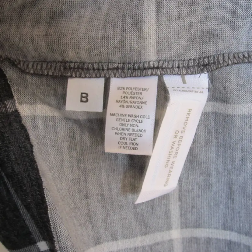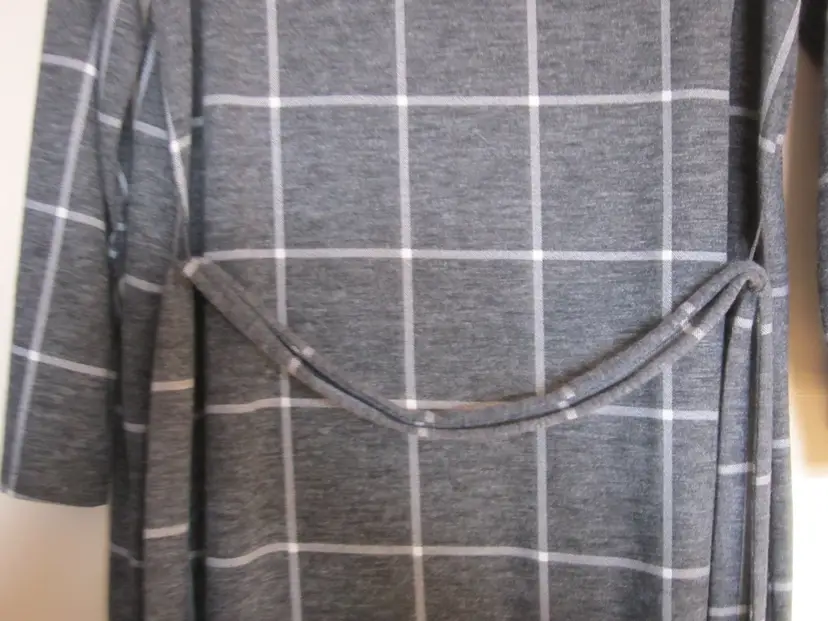 Size Medium Belted 77% polyester, 21% Rayon, 2% spandex Length 35” Armpit to armpit 20”