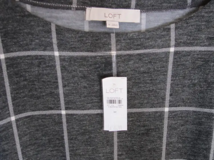 Condition New with tags: This item is brand new and has never been worn. It still has the original tags and/or original packaging. See all condition definitionsopens in a new window or tab Brand-LOFT Pattern-Plaid Size Type-Regular Department-Women Sleeve Length-Long Sleeve Size-M Color-Gray Style-Shift Material-Polyester Blend Fabric Type-Knit Size (Women's)-M