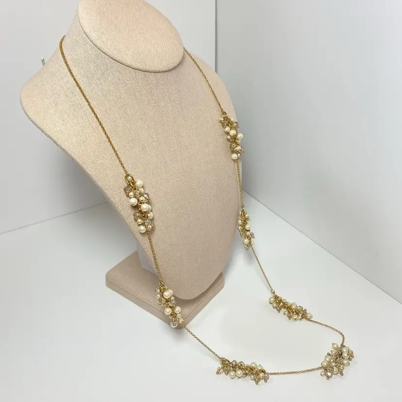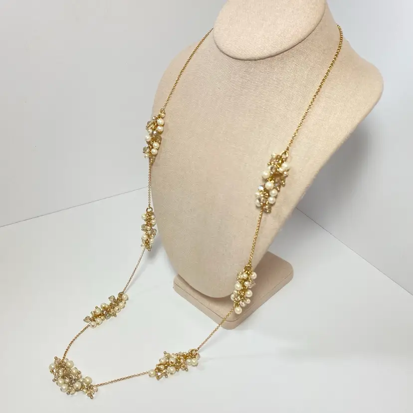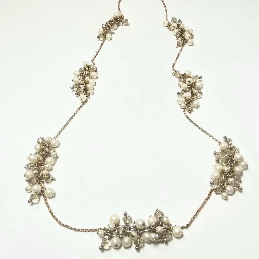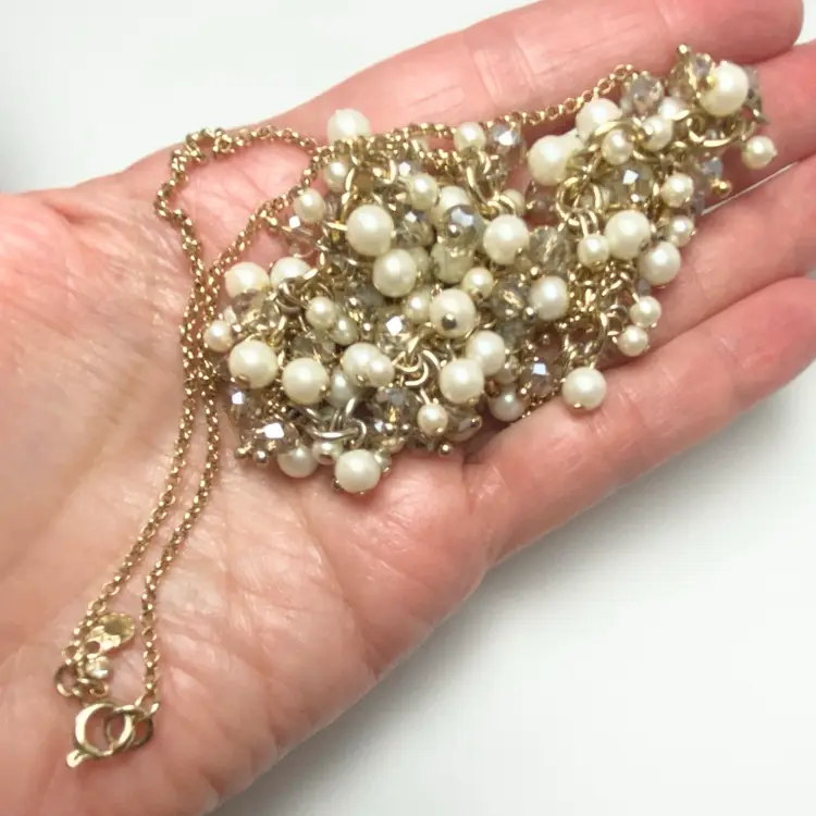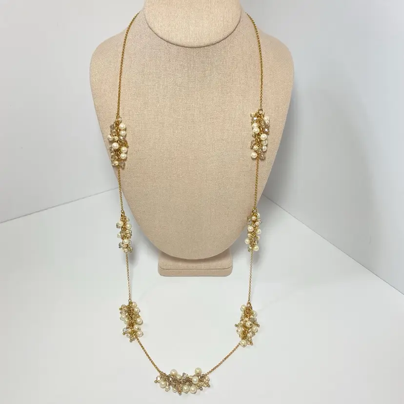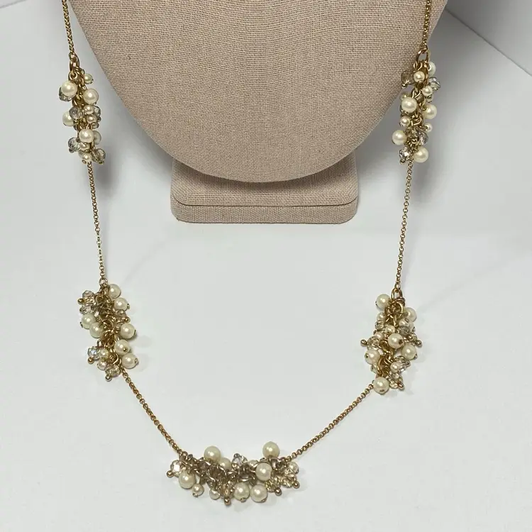 Ann Taylor Vintage Cluster Crystal Faux Pearl Beaded Station Gold Tone Necklace. Very good condition. Please see pictures for details. SMOKE FREE/PET FREE HOME Approximate measurements: Length- 36"