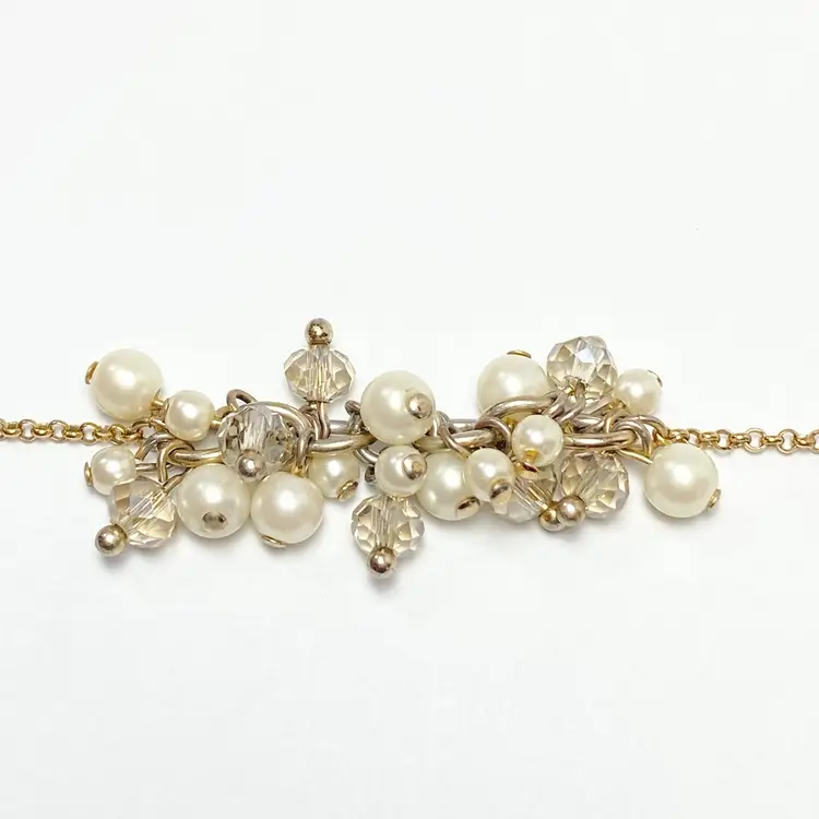 Ann Taylor Vintage Cluster Crystal Faux Pearl Beaded Station Gold Tone Necklace
