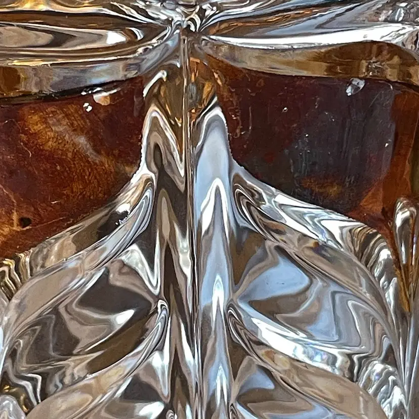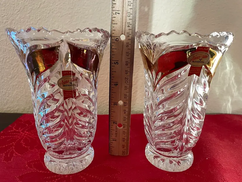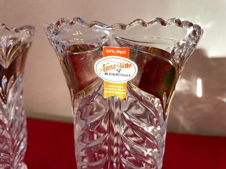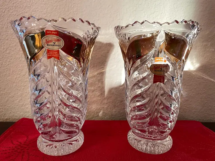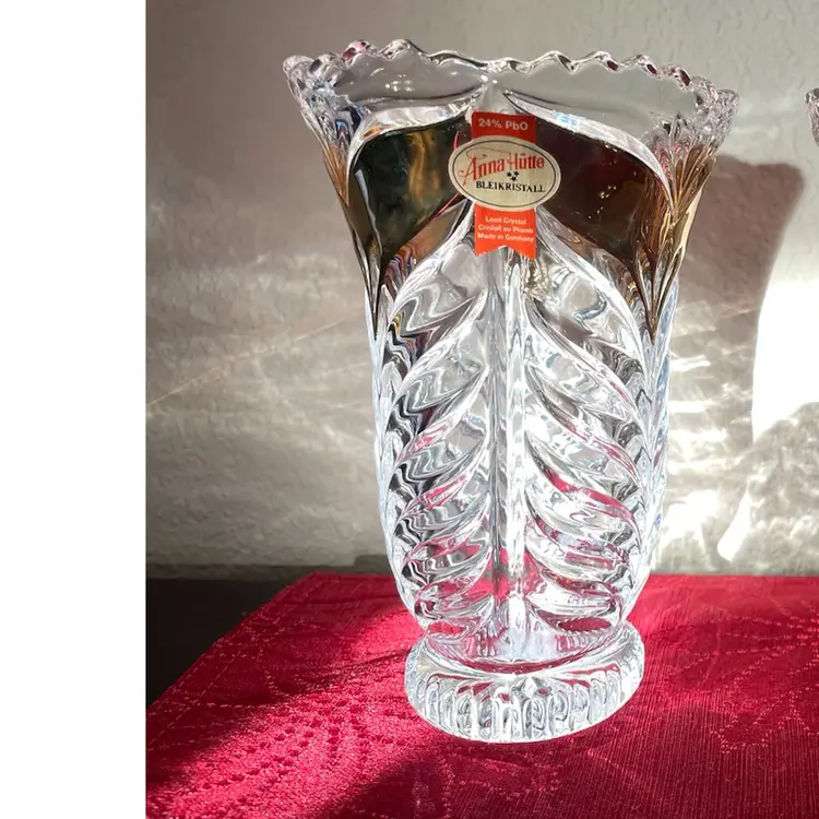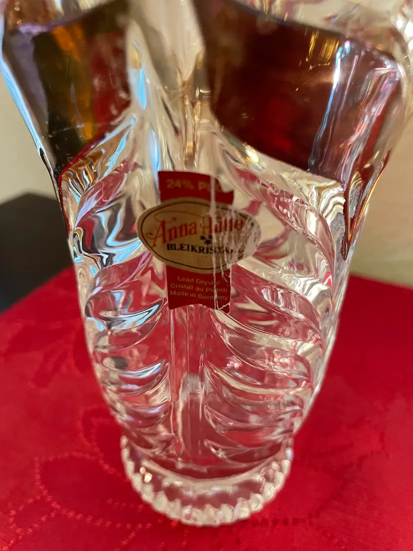Beautiful 6 1/4"H lead crystal. No chips or cracks. The gold is tarnished and missing in a couple spots .