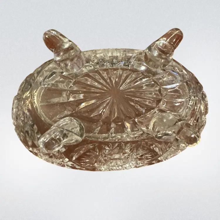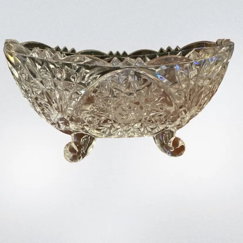 This item is a vintage Anna Hutte Bleikristall footed crystal bowl.