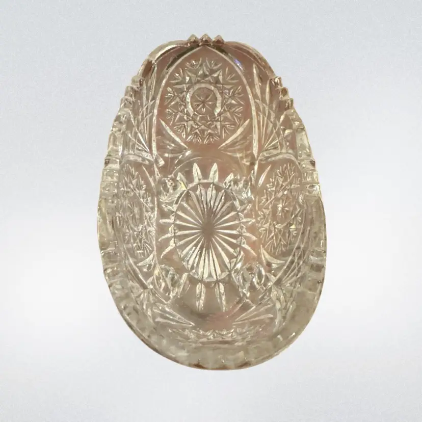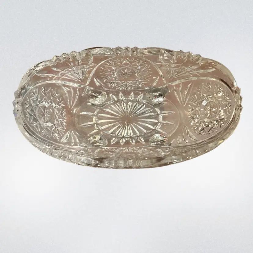 It is made of 24% lead crystal and features a detailed cut glass pattern.