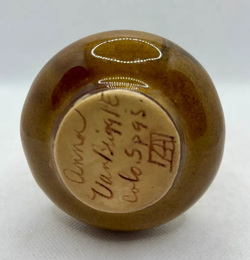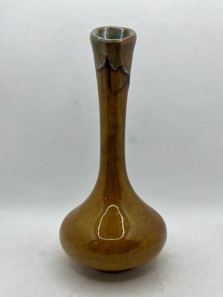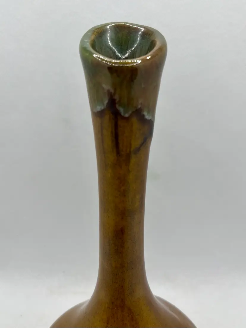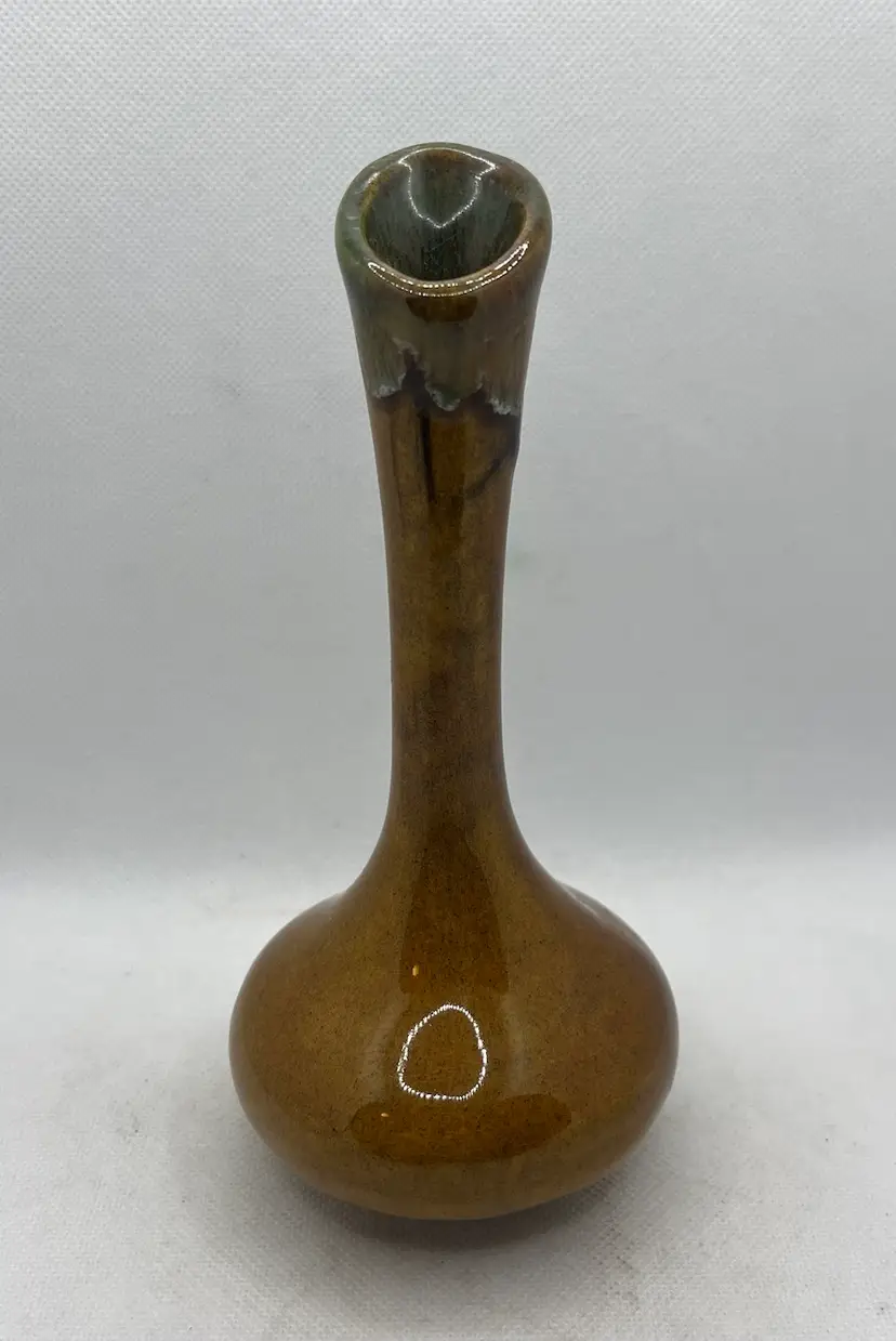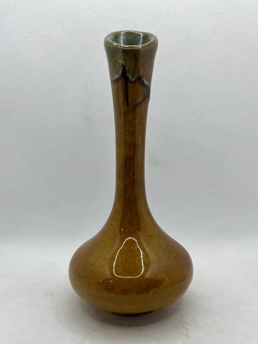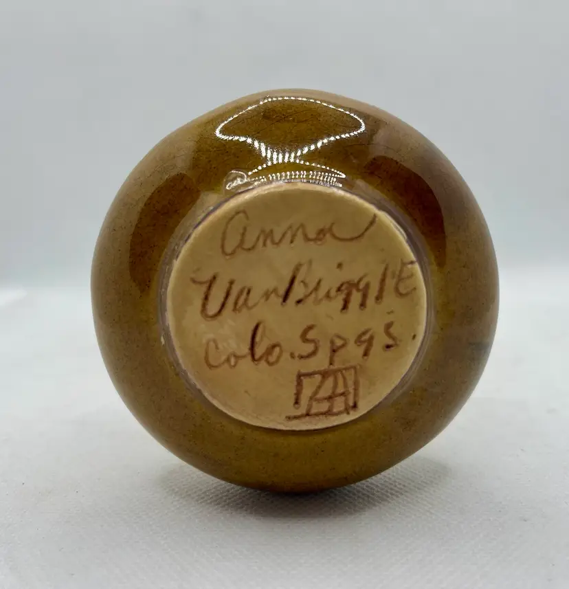 Signed Anna Van Briggle Colorado Springs Brown Drip Glaze Art Pottery Bud Vase 7” x 3.5”. Great condition with minor surface wear or crazing. No chips or cracks.