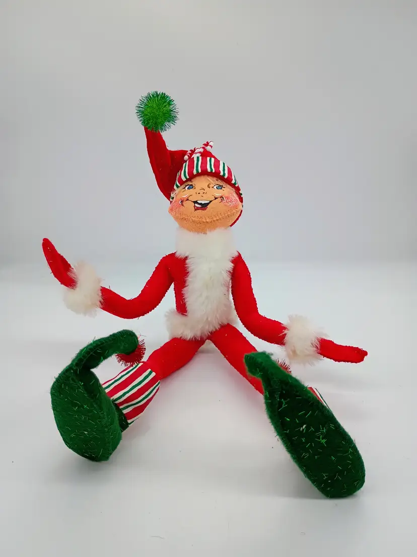 Annalee Christmas 2005 Large Red Sparkle Candy Strip Elf 14 IN 738605. 14 IN tall when standing all other dimensions depend on pose position Can free stand or sit. This is preowned . No rips tears fraying fading stains or odors. Has cloth tags. in Excellent Used Condition. Ships with arms and legs folded against body to reduce packing size. Ships USPS domestically and UPS/ USPS International Shipping Globally