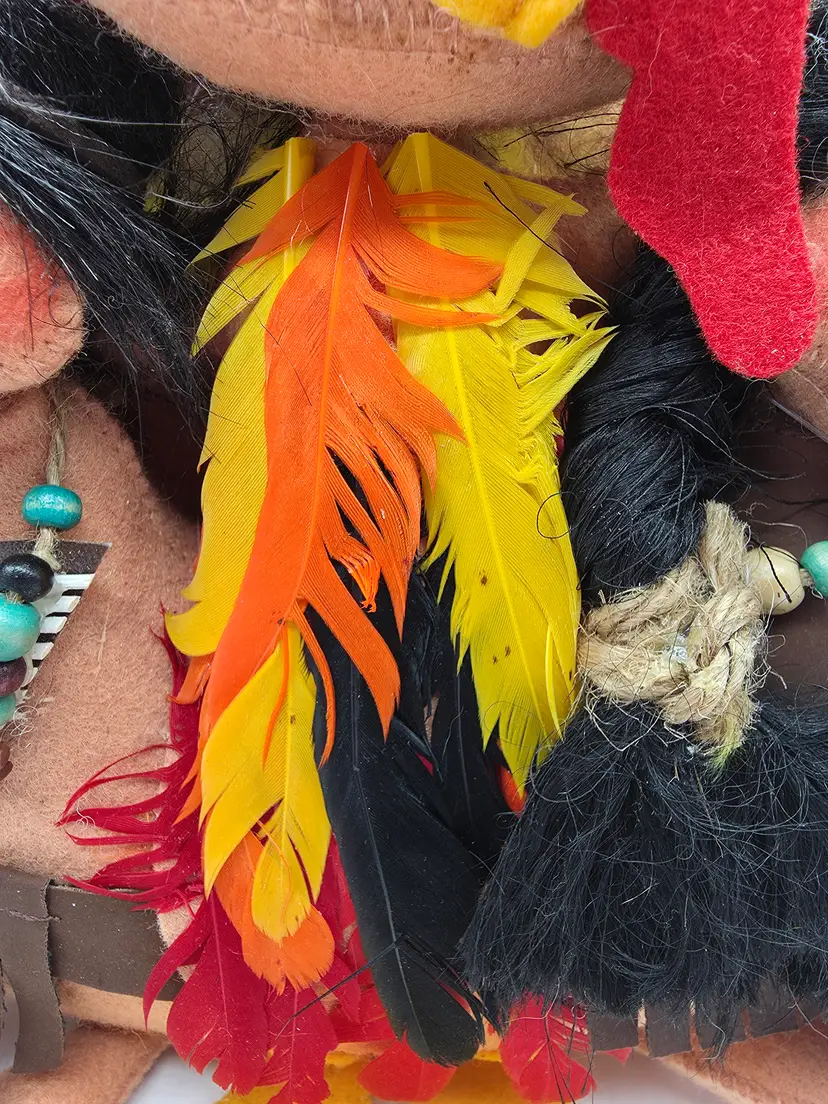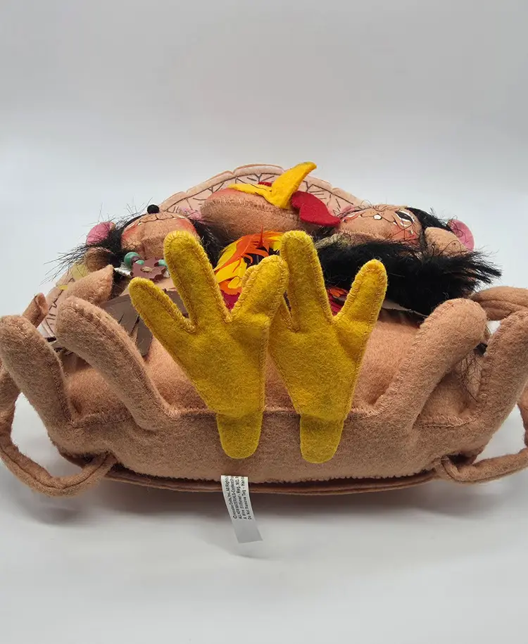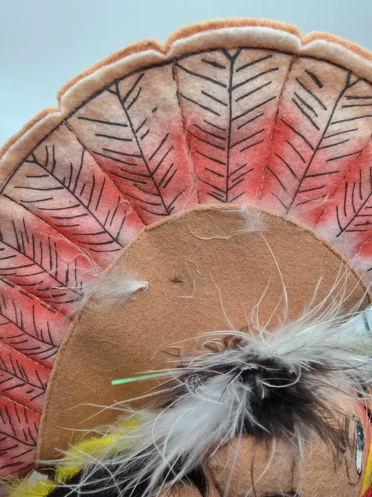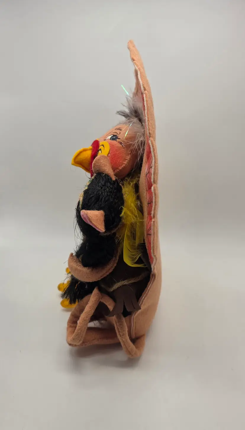 This 2007 Annalee Doll is a Thanksgiving Turkey with Native American mice. It is a hand-painted plush doll made of felt. This collectible is a special addition for collectors or holiday enthusiasts looking for a distinctive Thanksgiving decoration.