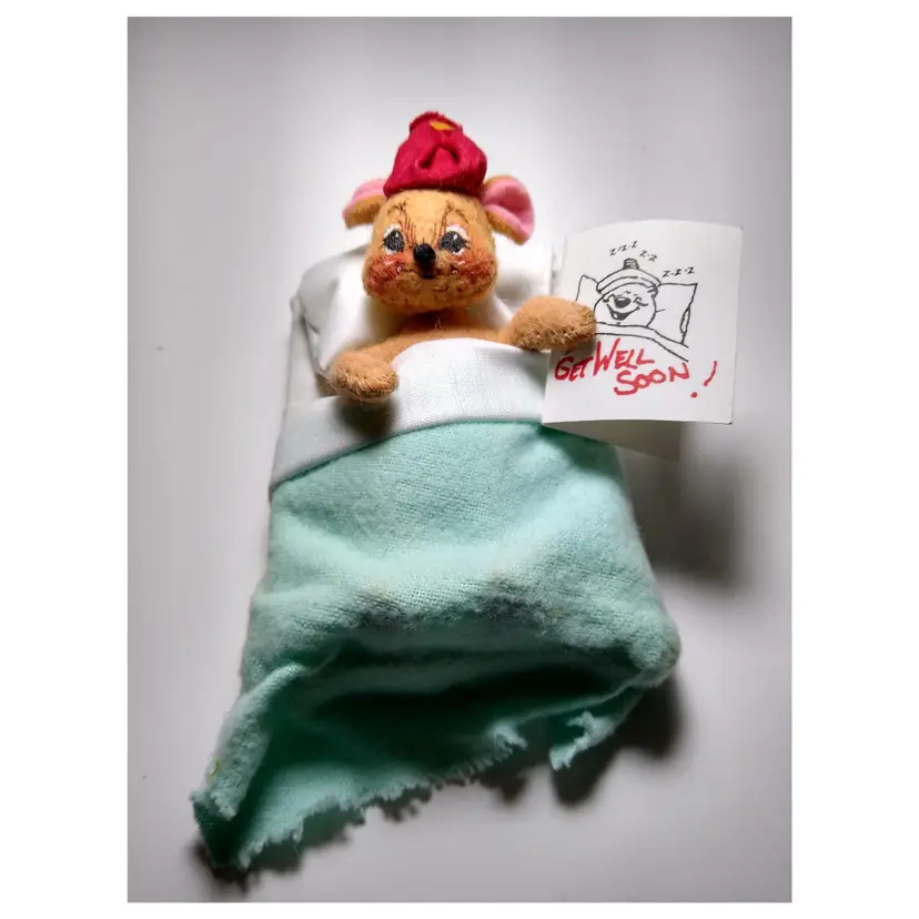 This ANNALEE Get Well Soon Mouse Resting In Bed 1997 Anthropomorphic Doll is a 4" vintage item that will make a great addition to your collection. The doll is dressed in a cloth material and features a gender-neutral design. It comes with a tag and is an original piece from the Annalee Dolls product line. The doll is perfect for those who love fantasy themes and is a great gift for occasions like Get Well. The set includes one doll and is a single unit. The doll was manufactured in the United States in 1997 and is an excellent addition to any doll enthusiast's collection.