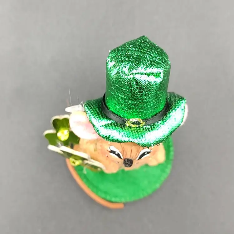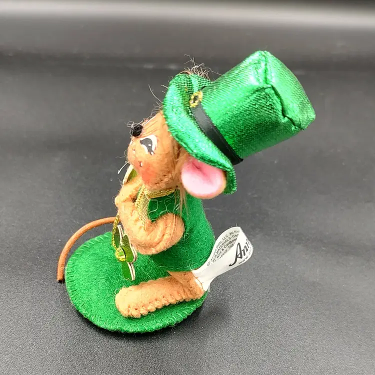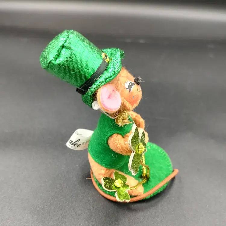 2009 Annalee Leprechaun Mouse Doll. Height 3.5" x width 2" x length 2". Made in USA