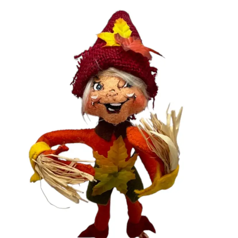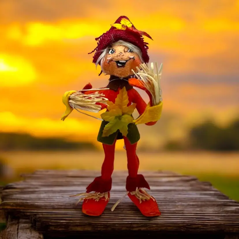This charming scarecrow doll is perfect for adding a touch of fall to your home decor. With its vibrant colors and adorable details, it's sure to bring a smile to your face. Ideal for Thanksgiving or autumn-themed displays.