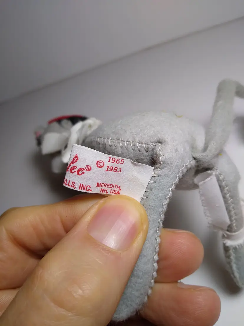 Used condition. 7" tall. Has some light general age wear. Some of fabric looks slightly worn. With cloth tag. Dated 1983.
