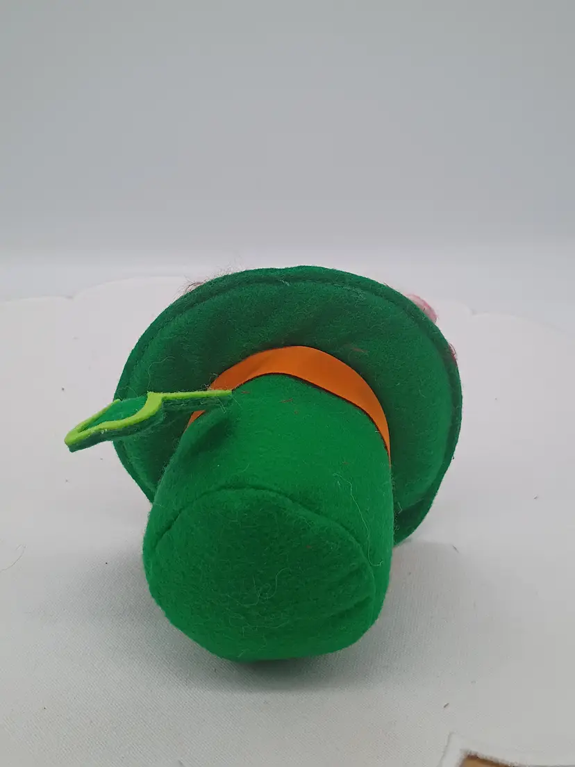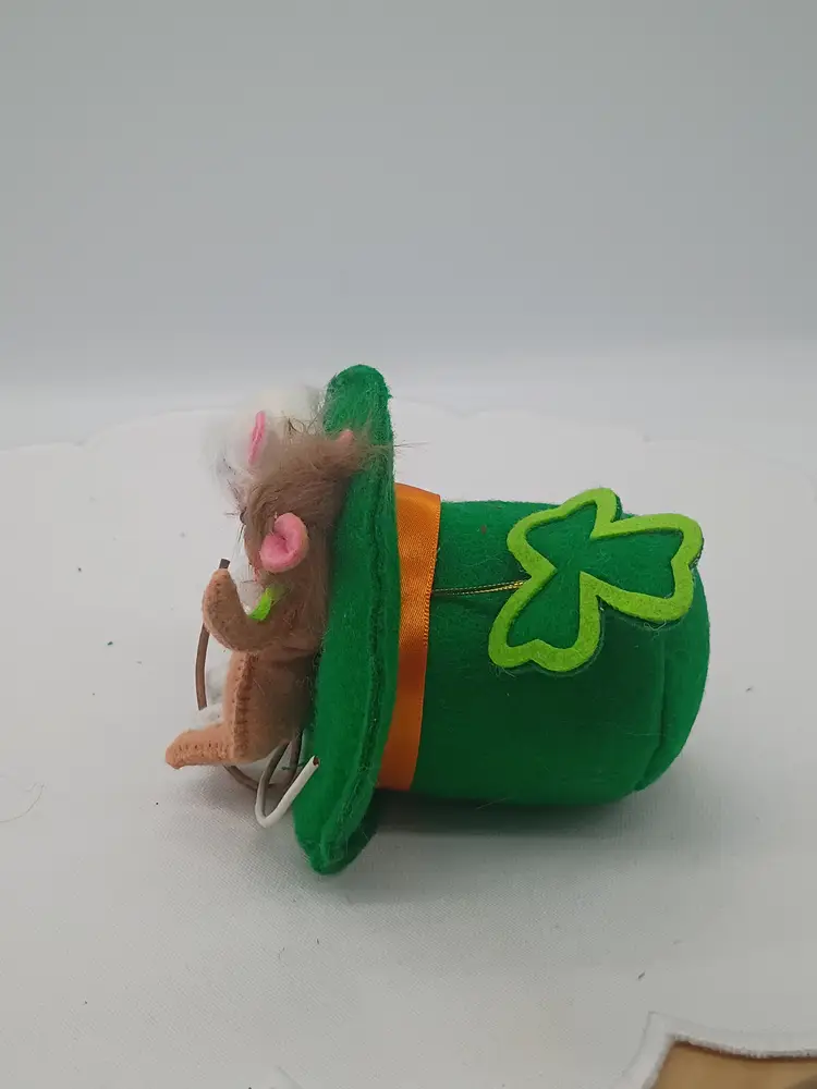 Annalee St. Patrick's Day 2 Mice in Irish Top Hat with Shamrock #150214. This is 4 inches tall and wide and about 5 inches long. This is preowned in Near Mint condition. No rips tears holes stains or odors. No hang tags but does have body tag. No missing or damage to detail. Ships USPS