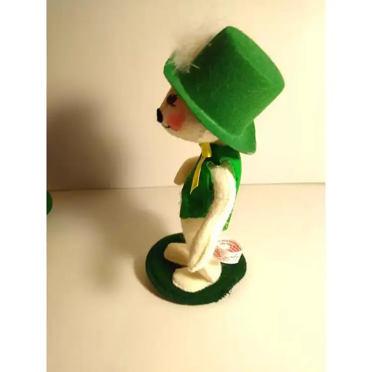 This ANNALEE St. Patrick's Day Irish Dressed White Bear in Feather Hat is a vintage item that will surely be a great addition to your collection. The bear is made of cloth material and has a size of 8 inches. It features an Irish Bear design, perfect for St. Patrick's Day, and comes with a set that includes a doll. The doll is gender-neutral and is an original Annalee product. This retro-themed doll is part of the Annalee Mobilitie Dolls product line, manufactured in the United States in 1993. The doll's vintage status adds to its collectible value, making it a must-have for doll enthusiasts. Get your hands on this unique item today!
