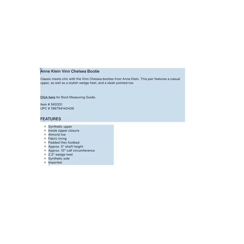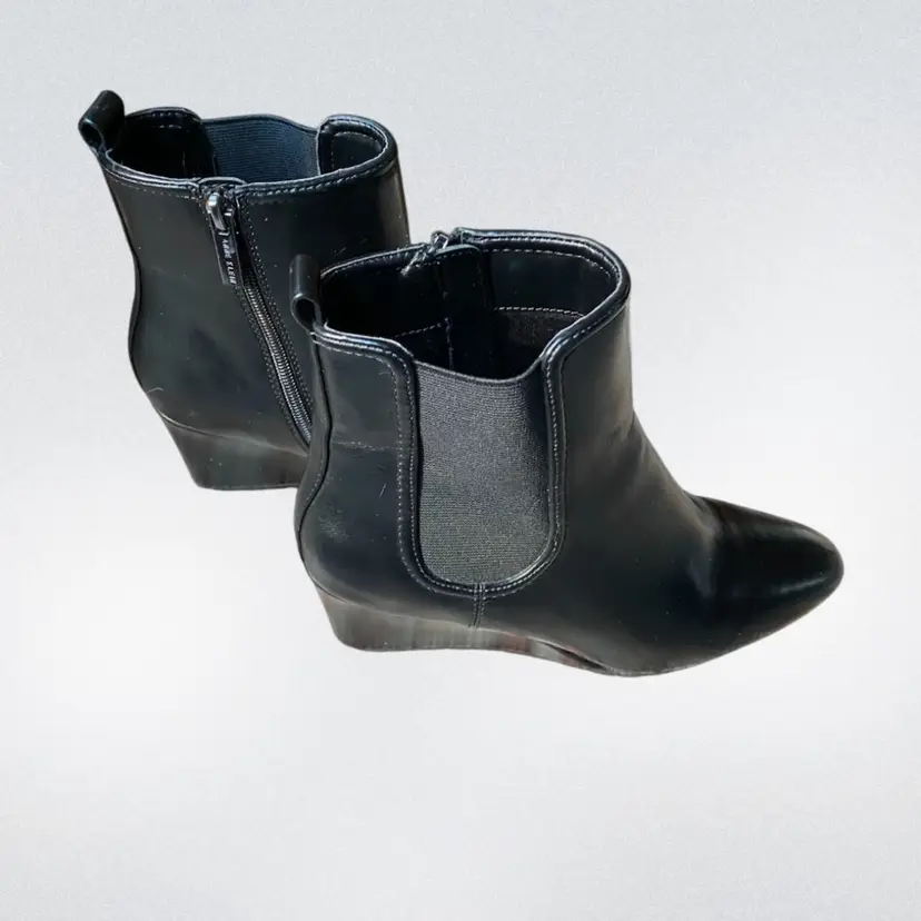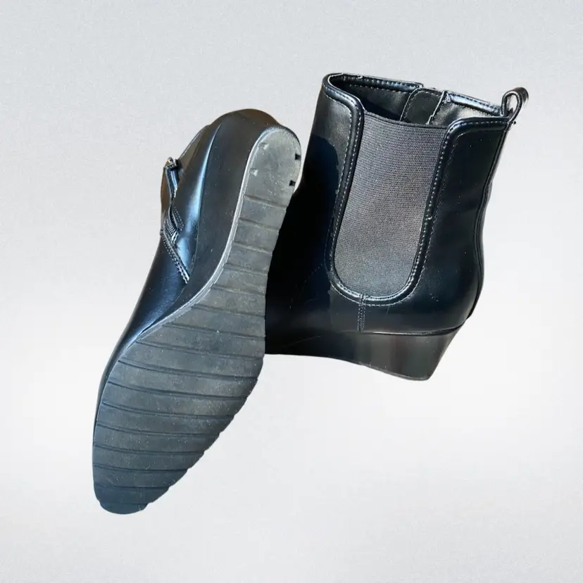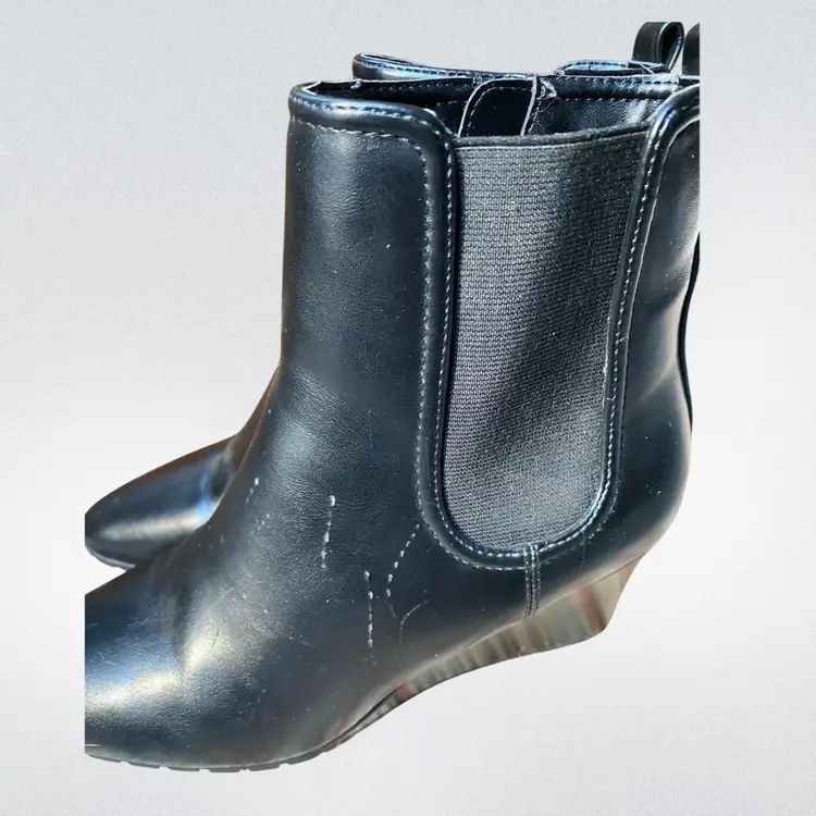 Casual upper wedge heel. 5” shaft height. 10” calf circumference 2.5” wedge heel. Slight scratches on left shoe. Please see photo.