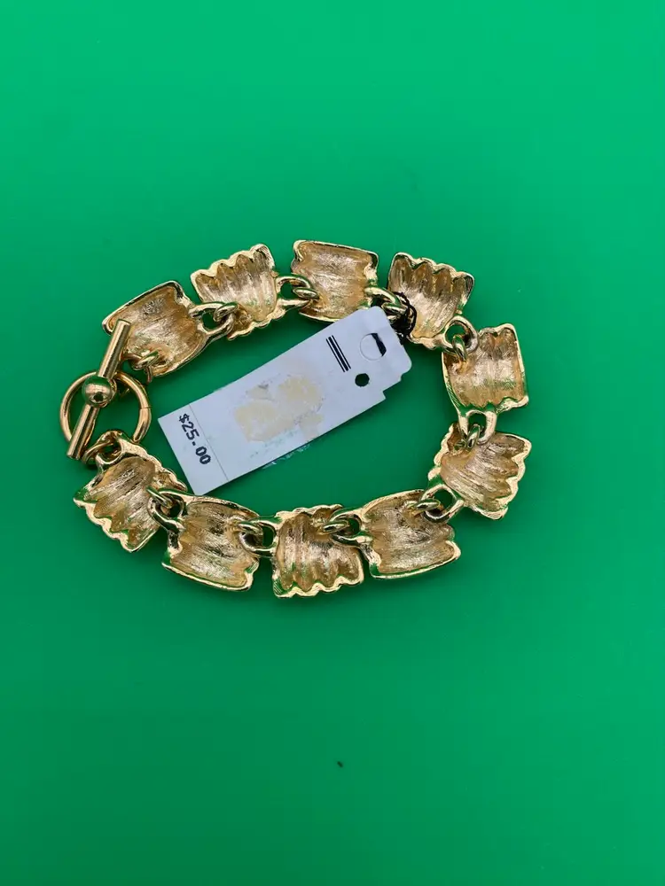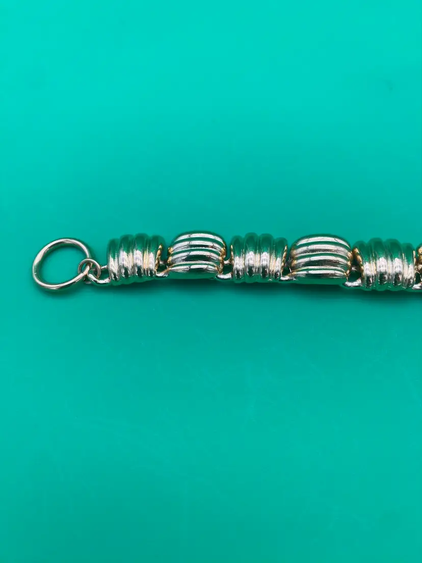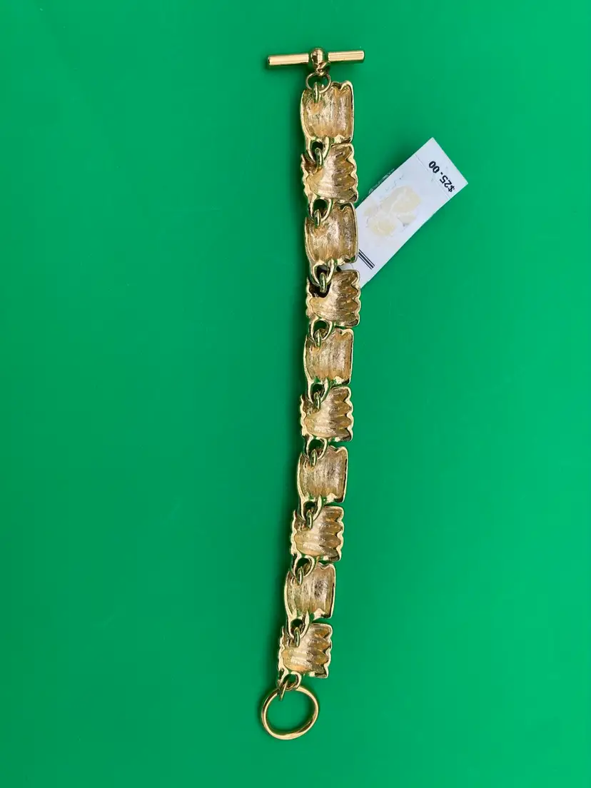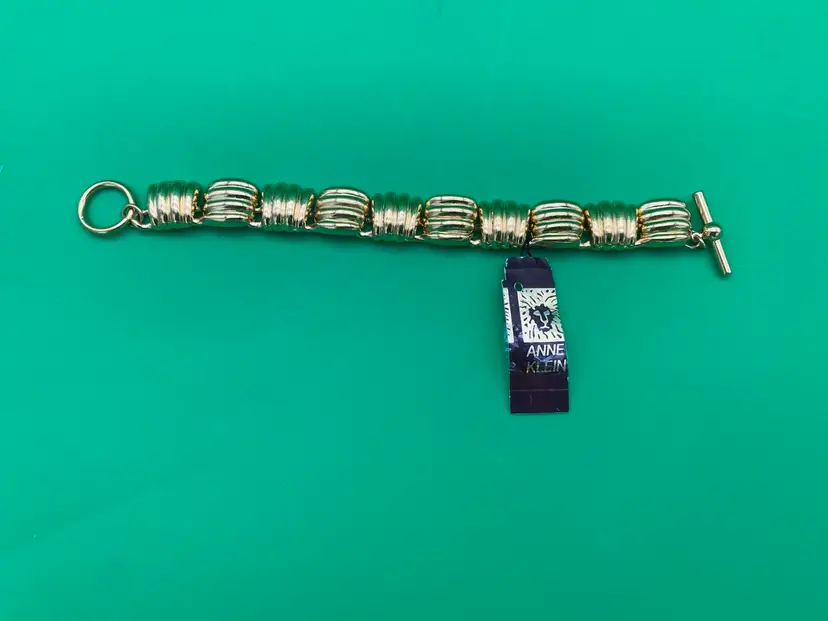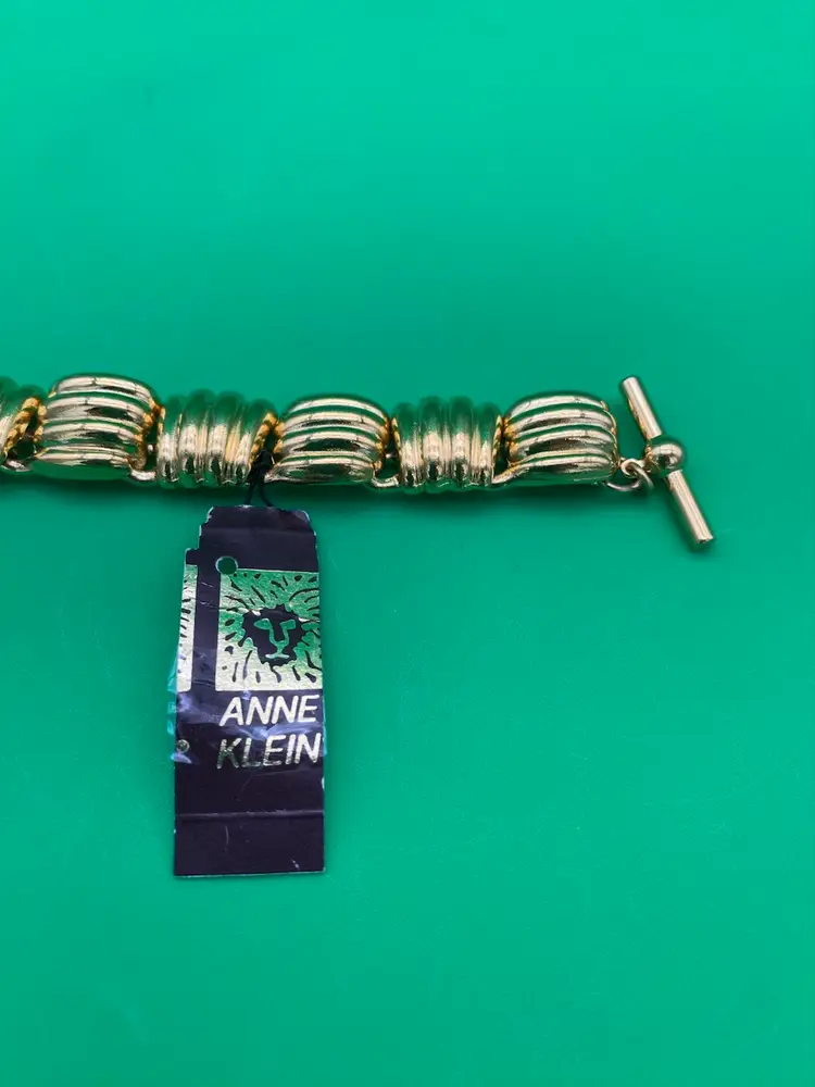 You are purchasing one Women's Gold-Tone Chunky Ribbed Pattern Bracelet by Anne Klein. This Bracelet is around 7.25 inches long in total. This Bracelet is new and with Tags.