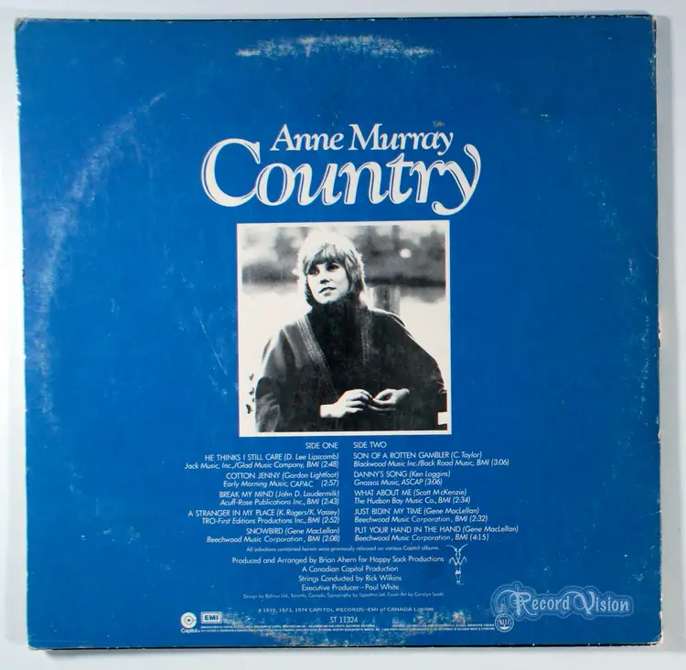 Country, by Anne Murray, is a gold-certified compilation that showcases her early crossover success in country and pop music. It features tracks from her previous albums, including This Way Is My Way, Snowbird, Honey, Wheat and Laughter, Talk It Over in the Morning, Straight, Clean and Simple, and Danny’s Song, capturing her signature blend of country, pop, and adult contemporary sounds. The album reached No. 6 on the Billboard Country Albums chart and No. 32 on the Pop Albums chart, reflecting Murray’s broad appeal during the early 1970s. A standout hit single from the album is He Thinks I Still Care, which became her first No. 1 on the Country charts, marking a significant milestone in her career. This compilation solidified Murray’s status as a pioneering Canadian artist who bridged genres and paved the way for future international stars.