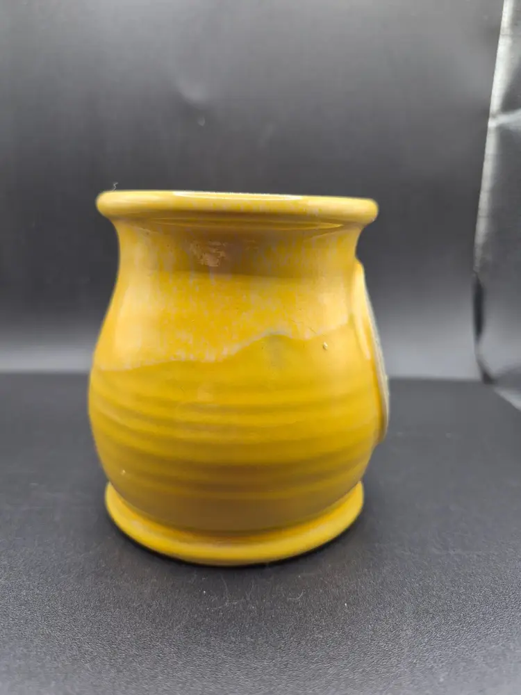 • Handmade in the USA • Unique mustard yellow glaze finish • Features Siesta Key, FL design • Comfortable grip handle • Durable and high-quality stoneware