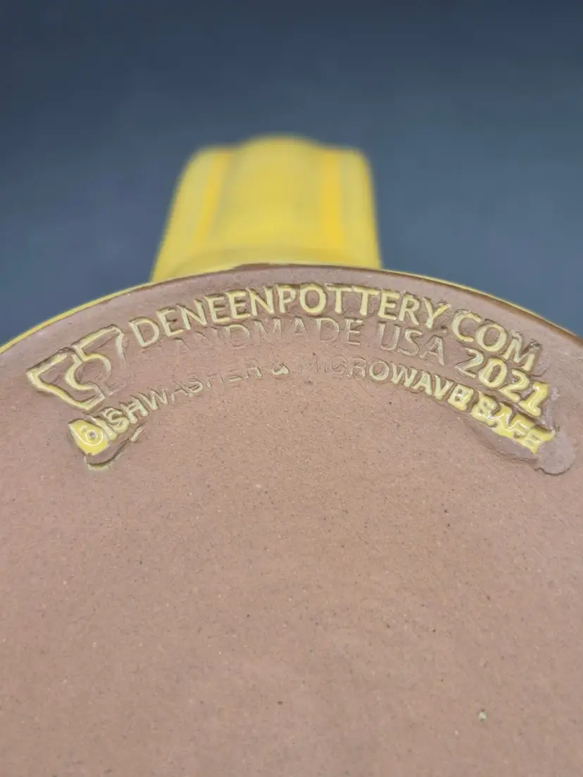 No visible chips, cracks, or stains. Bottom stamp reads "Deneen Pottery 2021 Handmade USA". 4.5 inches tall, 3.5 inches diameter at the opening.
