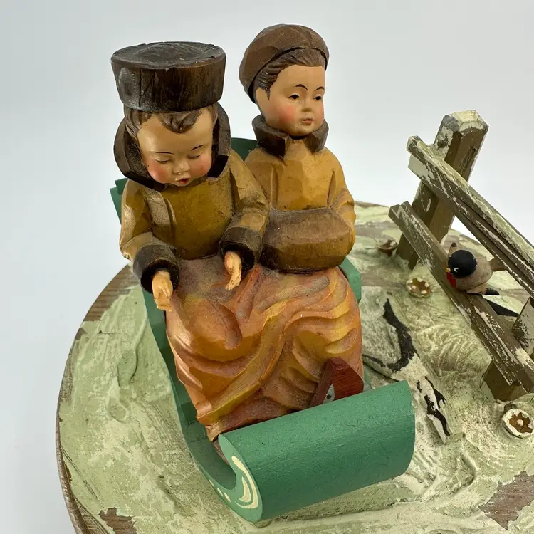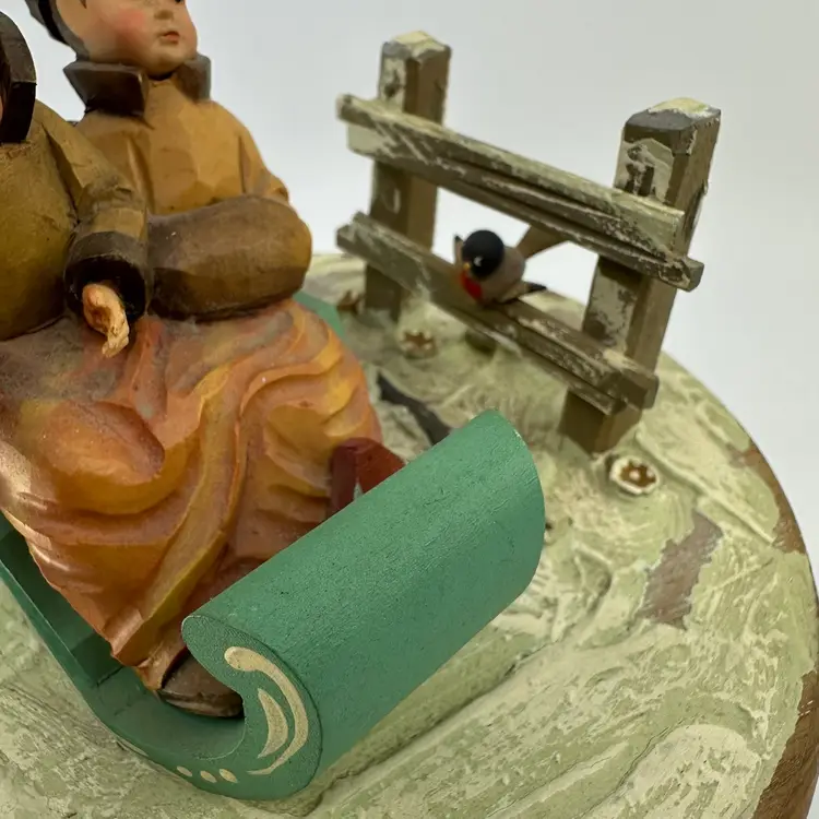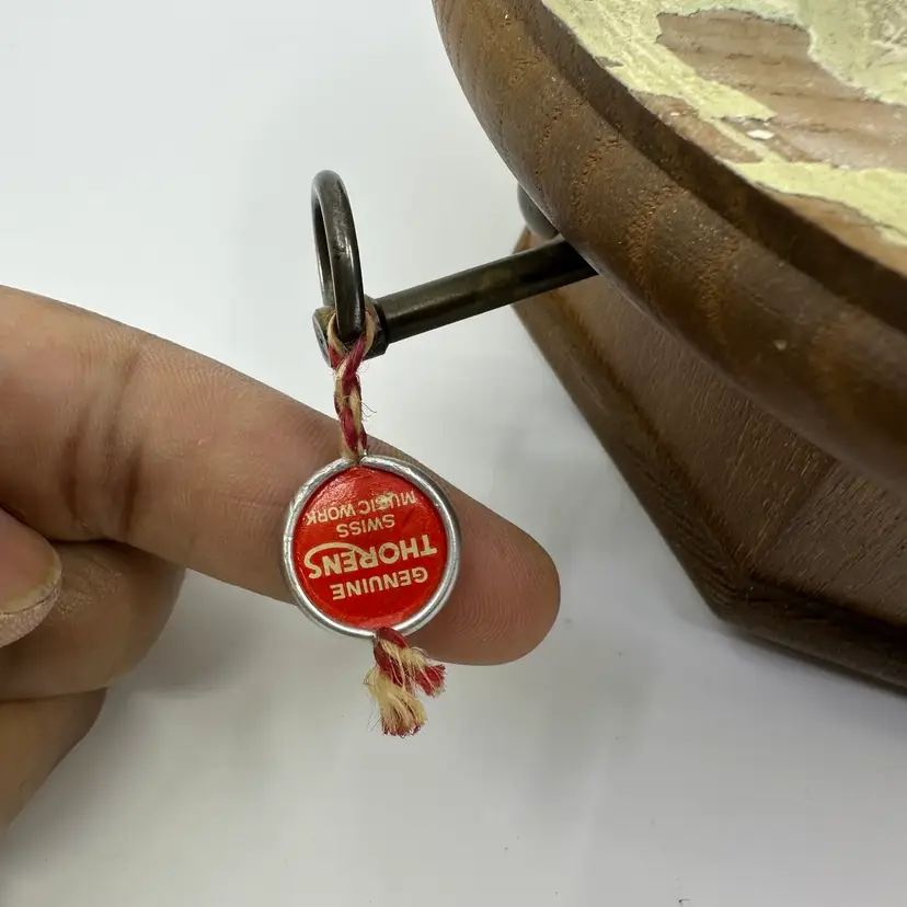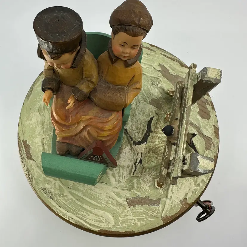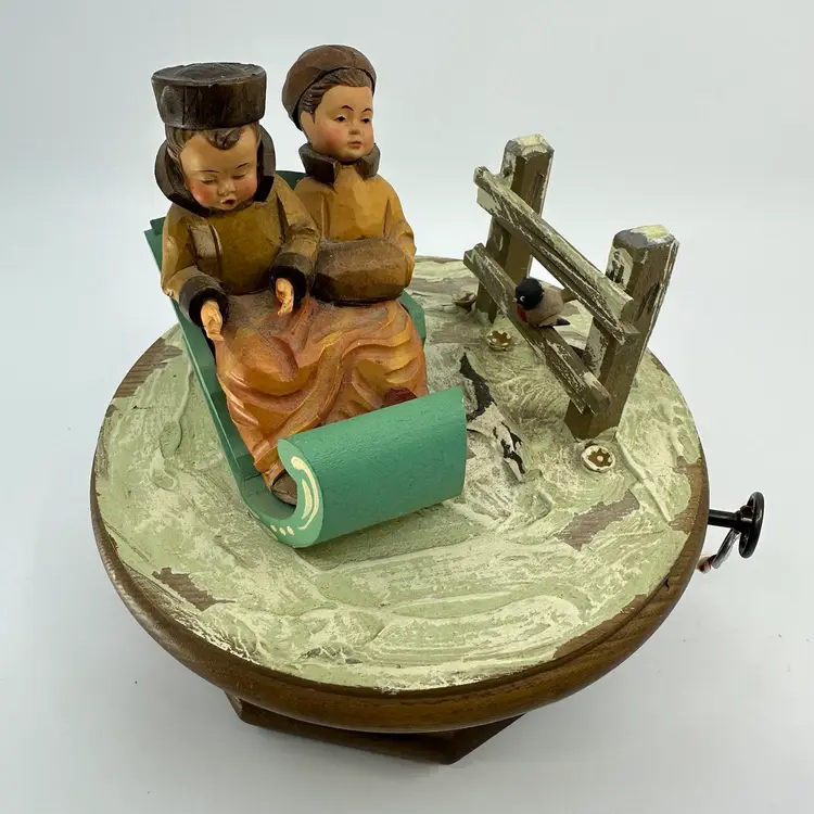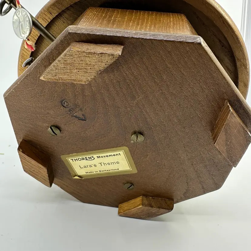 Approx 6” tall x 6.5” across, some wear as can be seen in pics. Music works and it turns.