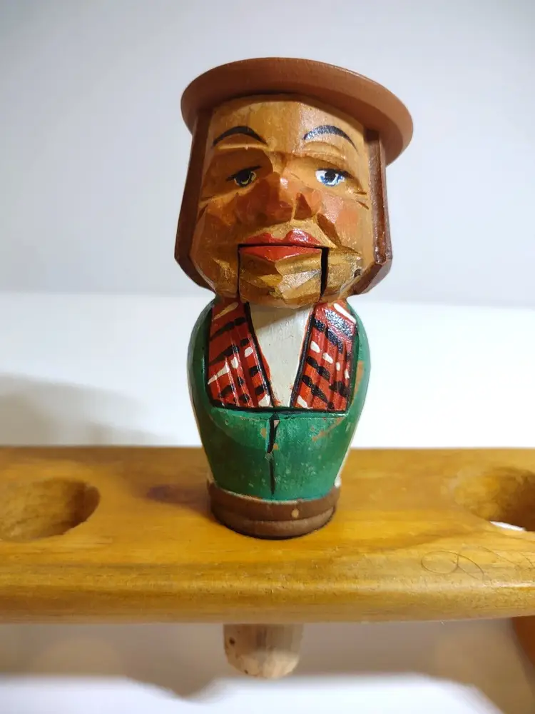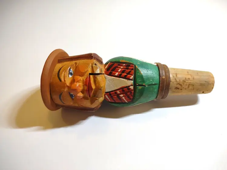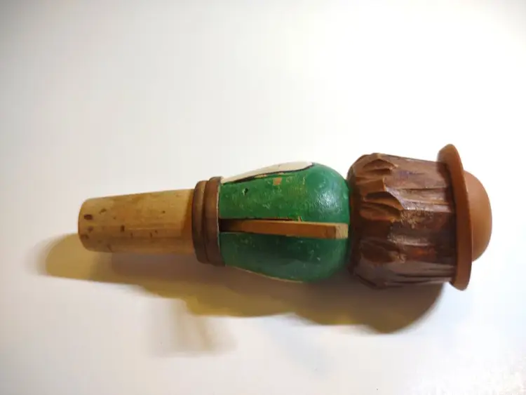 Artist: Unknown Shape: Asymmetrical Occasion: All Occasions Size: Small Custom Bundle: No Year Manufactured: 1950 Item Length: 5 in Additional Parts Required: No Suitable For: Bar Department: Adult Number in Pack: 1 Style: European Featured Refinements: Anri Wood Carving Features: Carvings Finish: Unknown Room: Any Room Handmade: Yes Engraved: No Pattern: Unknown Character: Carved Bottle Stopper Signed: No Color: Multicolor Material: Wood Modified Item: No Subject: Mechanical Bottle Stopper Brand: ANRI Type: Wood Carving Customized: No Collection: Bottle Stoppers Theme: Barware Original/Reproduction: Original Time Period Manufactured: 1950-1959 Country/Region of Manufacture: Italy Character Family: Bottlestopper