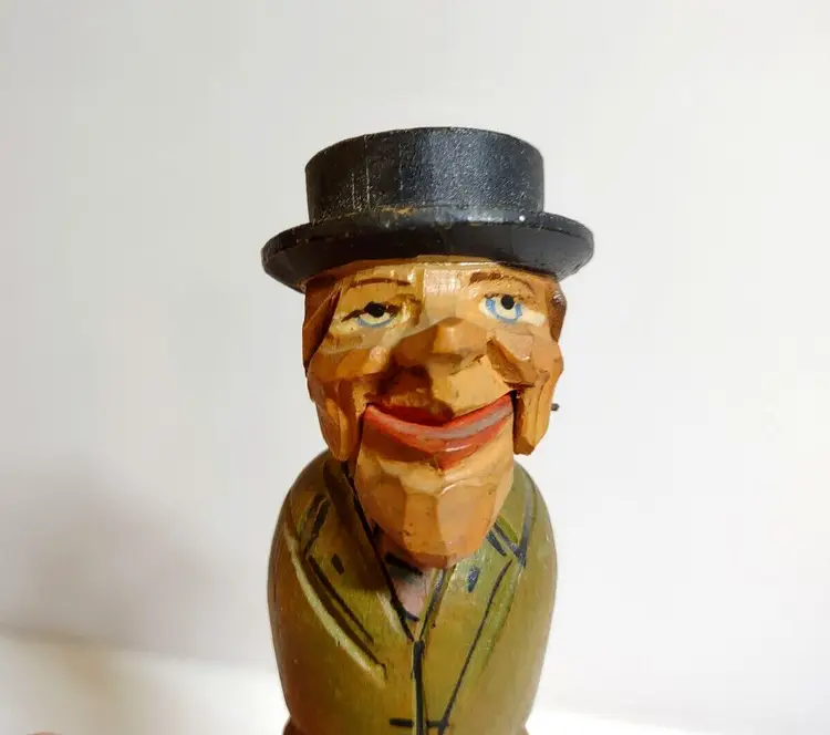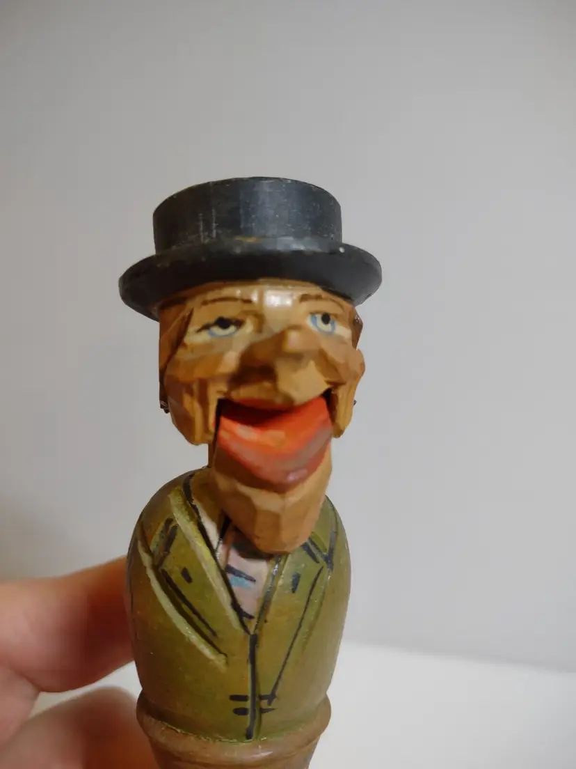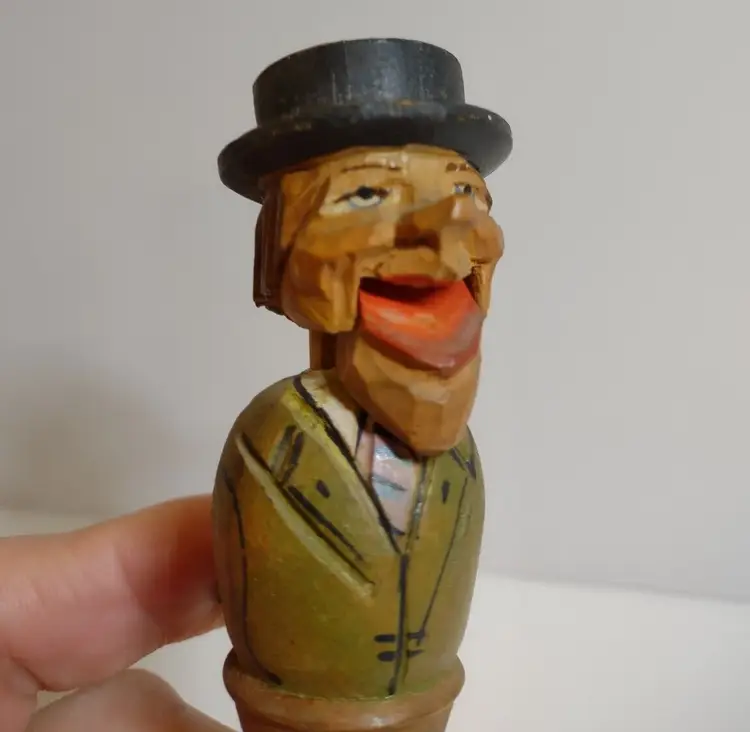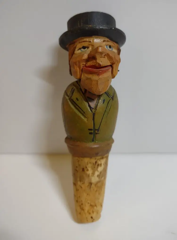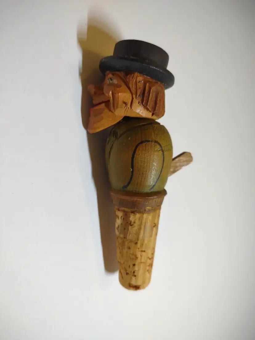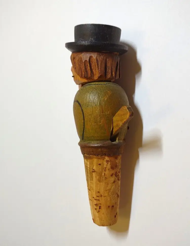 Artist: Unknown Shape: Asymmetrical Occasion: All Occasions Size: Small Custom Bundle: No Year Manufactured: 1950 Item Length: 4.25 in Additional Parts Required: No Suitable For: Bar Department: Adult Number in Pack: 1 Style: European Featured Refinements: Anri Wood Carving Features: Carvings Finish: Unknown Room: Any Room Handmade: Yes Engraved: No Pattern: Unknown Character: Carved Bottle Stopper Signed: No Color: Multicolor Material: Wood Modified Item: No Subject: Mechanical Bottle Stopper Brand: ANRI Type: Wood Carving Customized: No Collection: Bottle Stoppers Theme: Barware Original/Reproduction: Original Time Period Manufactured: 1950-1959 Country/Region of Manufacture: Italy Character Family: Bottlestopper