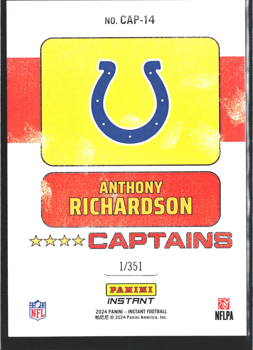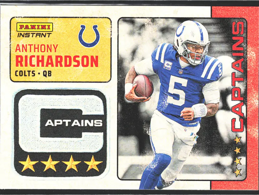 1st time buyer? Get $5 Off with code DISTRICT5 at checkout! Card as shown. All cards $20 and under ship PWE via lettertrackpro [https://www.letter-track.com/registerap.asp?AFID=8757] Sport: Football Set: 2024 Panini Instant NFL Manufacturer: Panini Features: Limited Edition, Serial Numbered Season: 2024 Parallel/Variety: Limited Player/Athlete: Anthony Richardson Type: Sports Trading Card Autographed: No Year Manufactured: 2024 Vintage: No Graded: No Team: Indianapolis Colts League: National Football League (NFL) Material: Card Stock Original/Licensed Reprint: Original Country/Region of Manufacture: United States