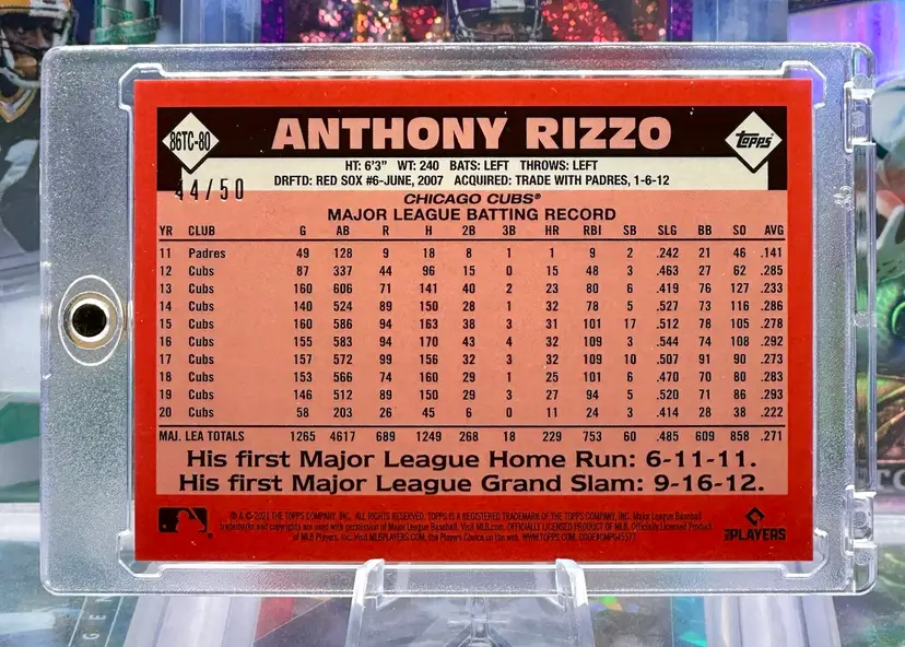 Anthony Rizzo 2021 Topps Chrome JERSEY # MATCH eBay 1/1 “One of One” Gold Mojo Refractor Serial Number Numbered #’d #d 44/50 Parallel Insert Short Print Chicago Cubs Rare MLB Baseball Card