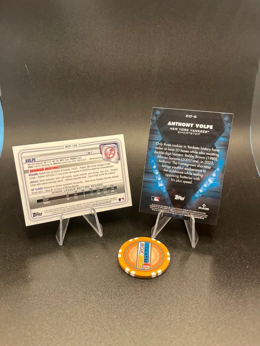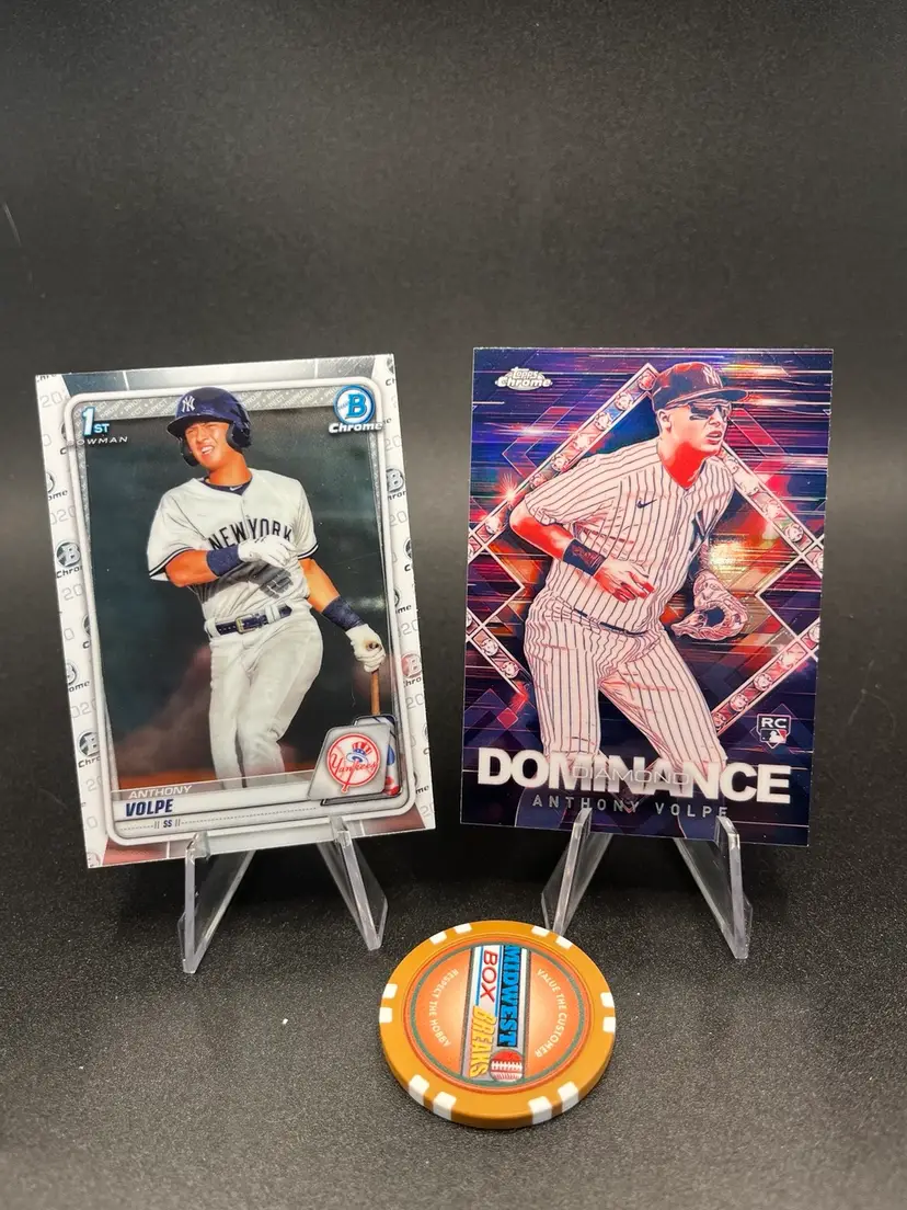 2-card Anthony Volpe lot. 2020 bowman chrome first Bowman 2023 Topps chrome update Dominance RC