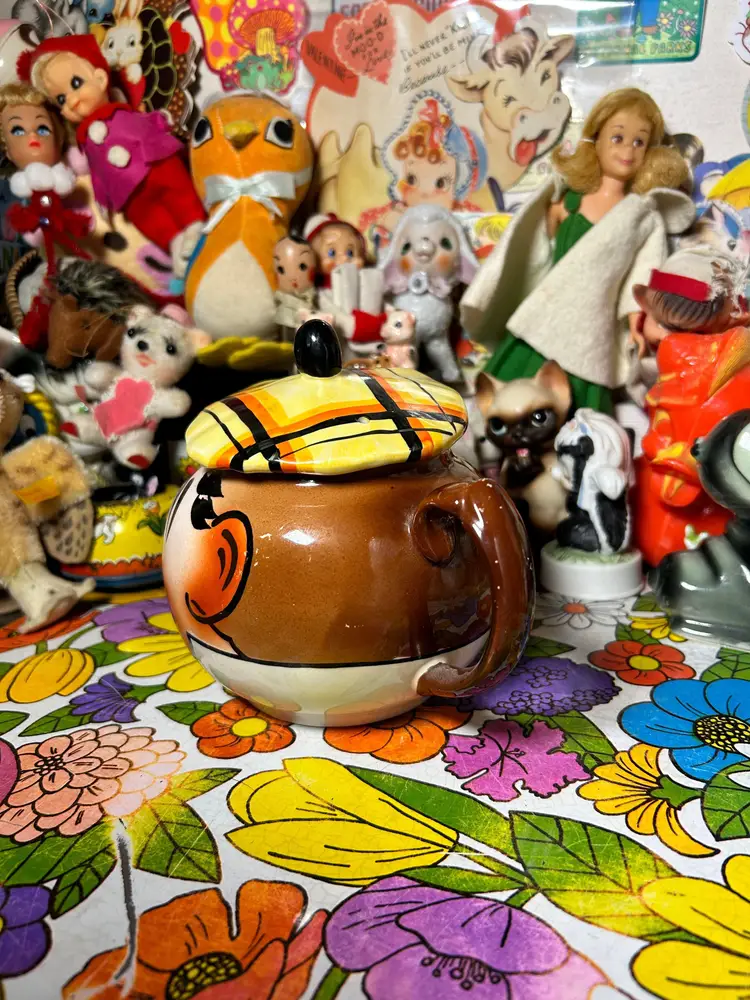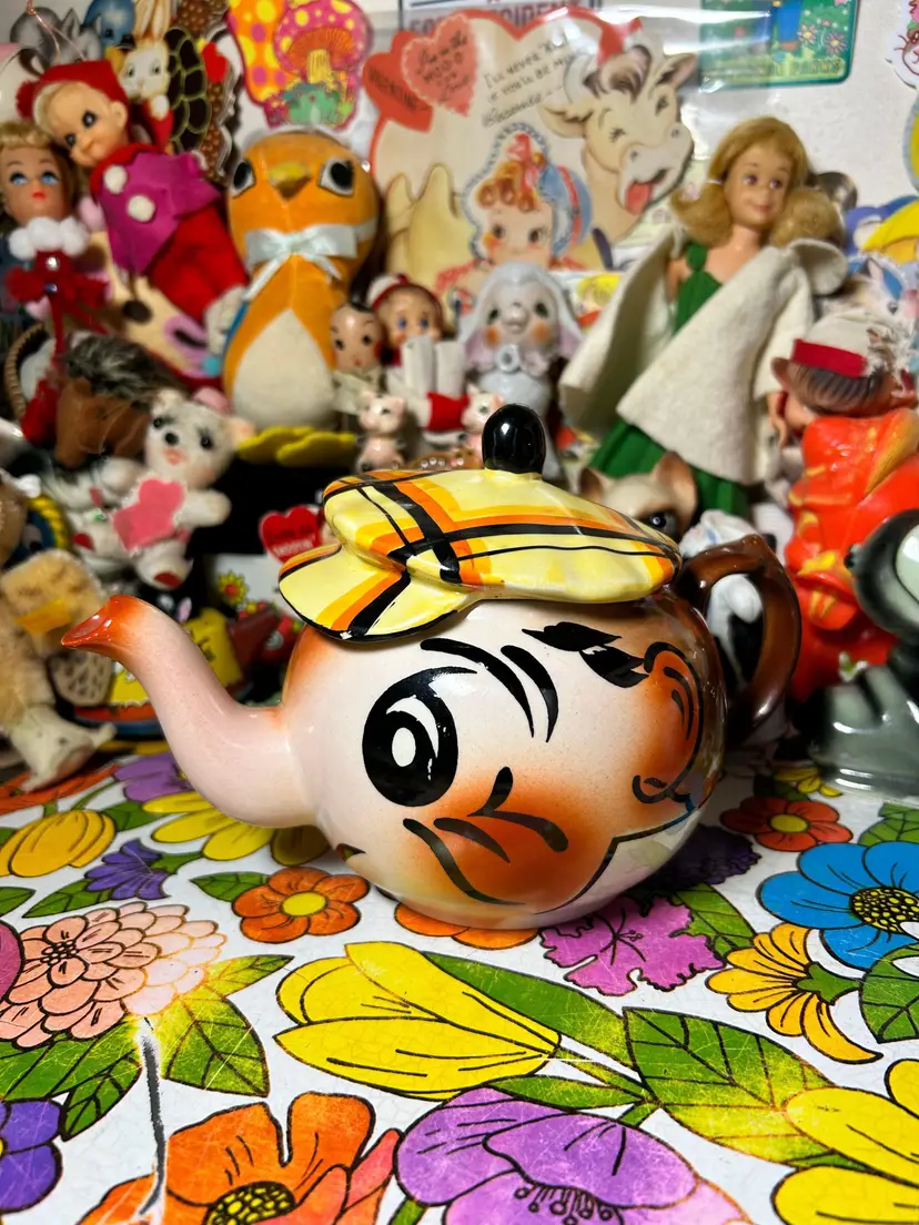 For sale! Anthro Dapper Man Wades Pottery Tea Pot. Some paint loss. No chips. Made in England. 5 inches tall.