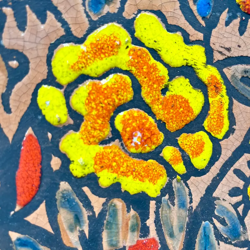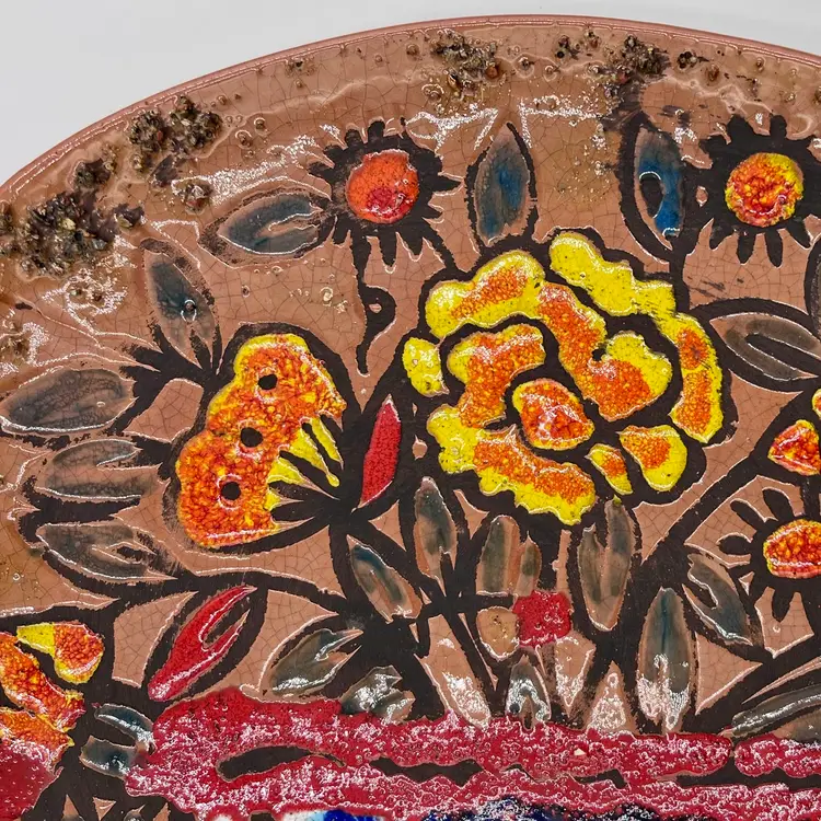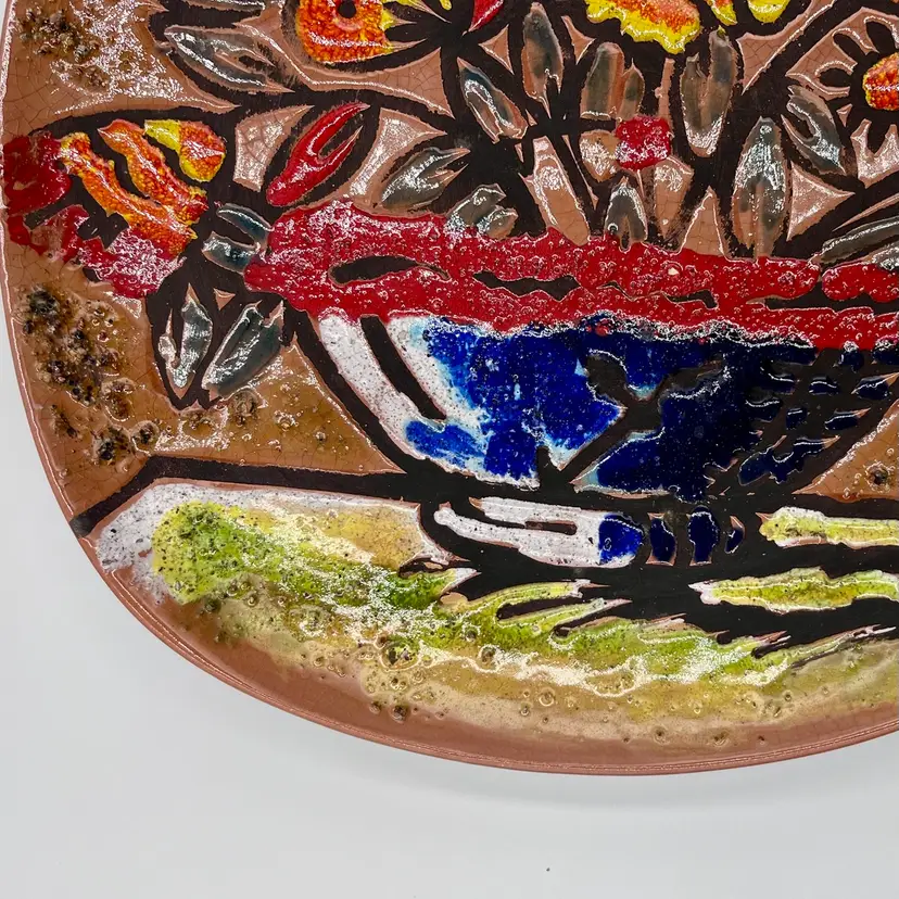 Very good preowned condition! SEE PHOTOS for one easily correctible chip on the front (red rim of painted bowl) and the few small marks on the back of the platter.