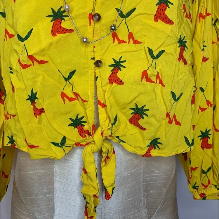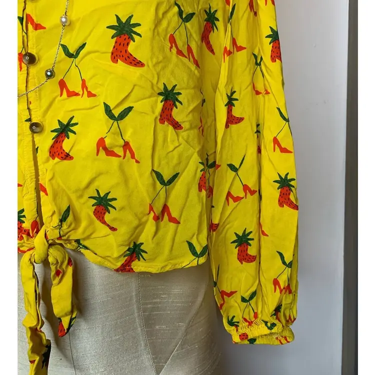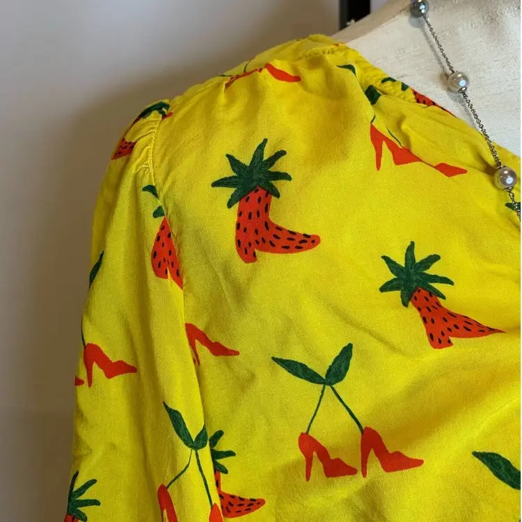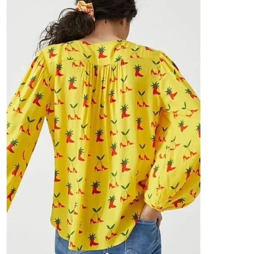 Brand: Anthropologie Size Type: Regular Type: Blouse Department: Women Character: Boots Size: 4 Color: Yellow Theme: Art
