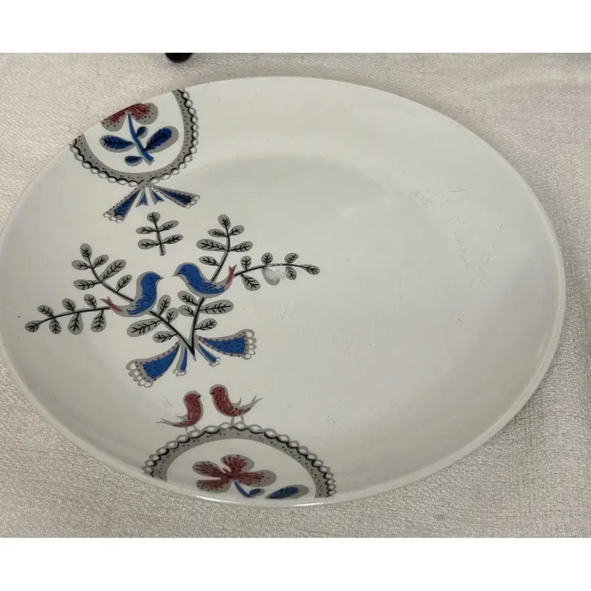 Anthropologie Black Thistle Blue & Red Love Birds 8” Salad Plates~ Set Of 4 are in great pre-owned condition. They do show wear, slight utensil marks, which is consistent with their pre-owned condition. Please review all pictures for proper assessment of their pre-owned condition.