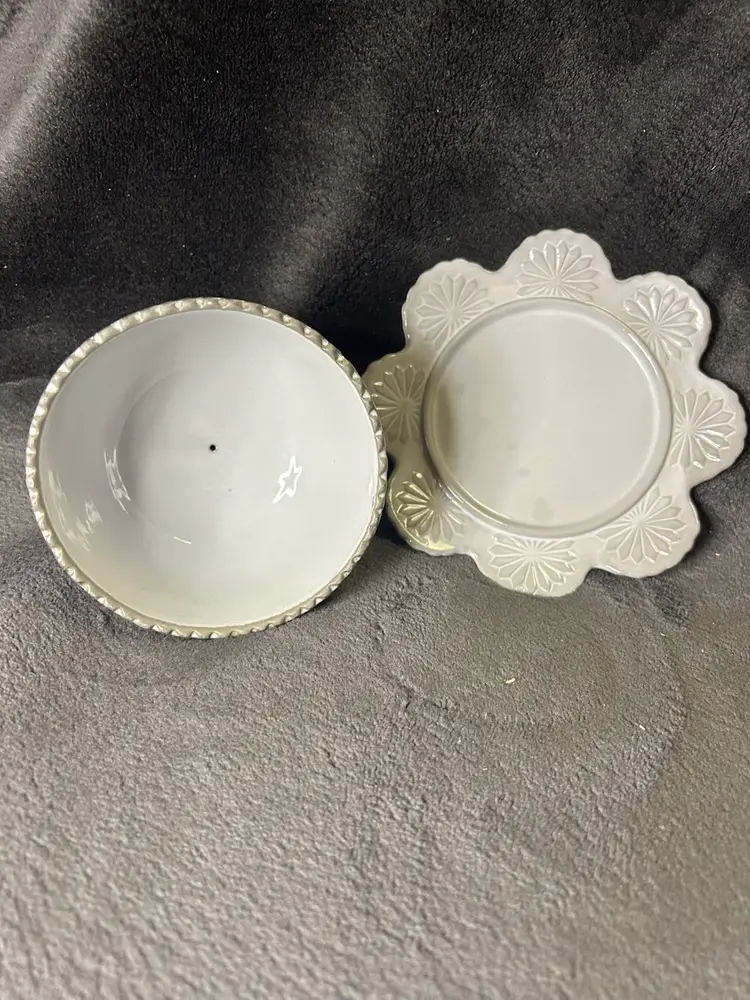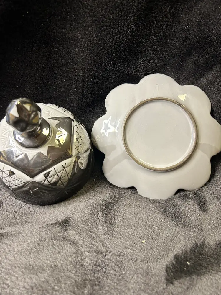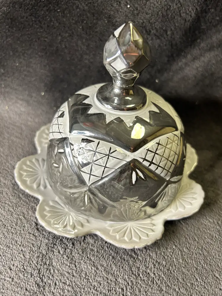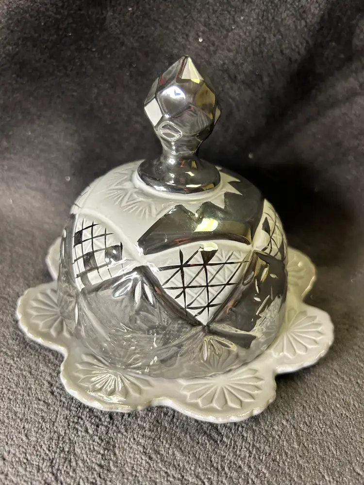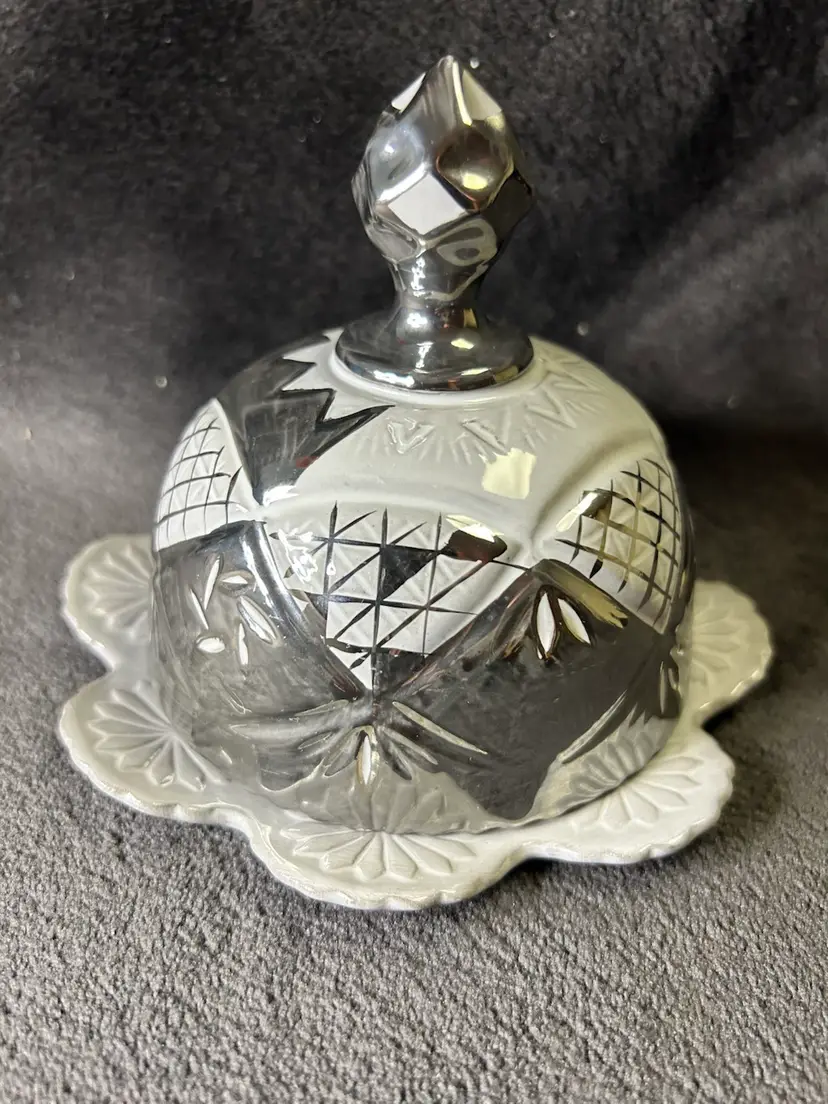 The Anthropologie Domed Butter Cheese Dish in Lausanne Silver Gray is a vintage-inspired covered dish made of glossy stoneware. With an abstract pattern and round shape, this silver dish adds a touch of retro style to any kitchen or dining table. Perfect for storing and serving butter or cheese, this unique piece combines functionality with a touch of elegance. Ideal for those looking to add a touch of charm to their table setting.