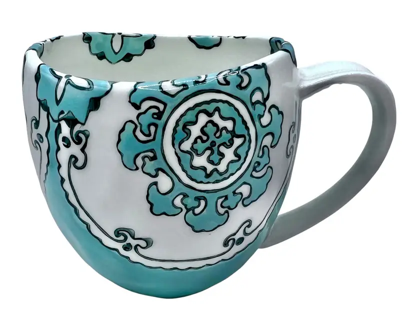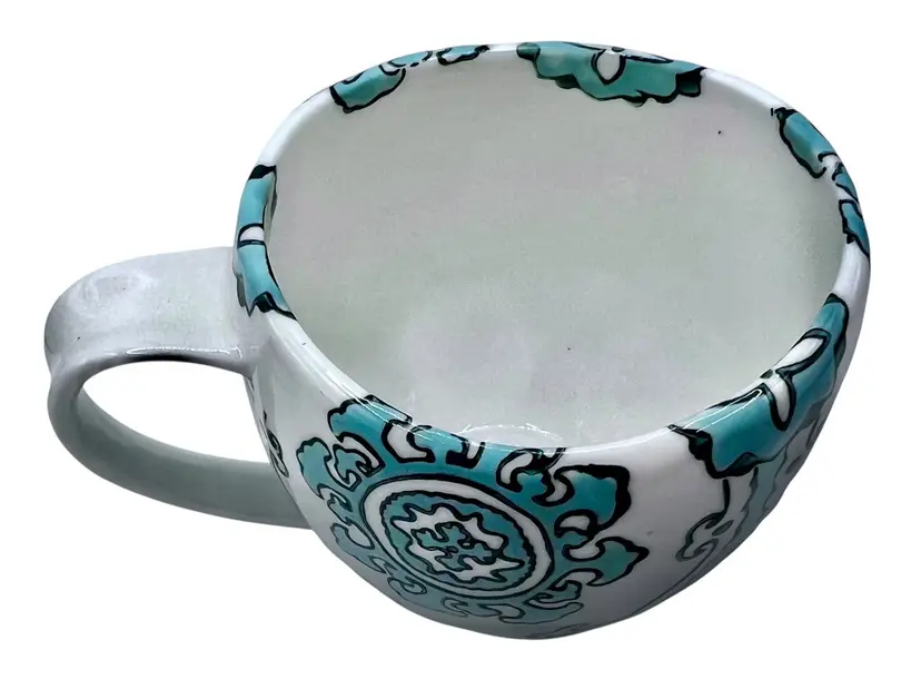 Aqua blue and white mug from Anthropologie’s retired Gloriosa collection.