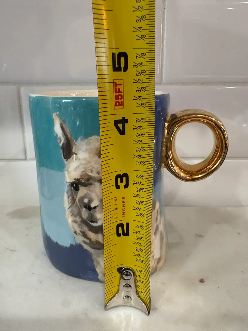 Anthropologie Llama Coffee Mug Cup Blue L C Walcott
