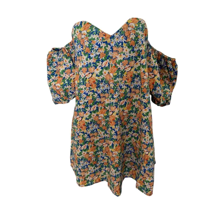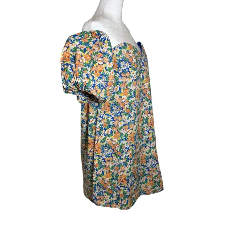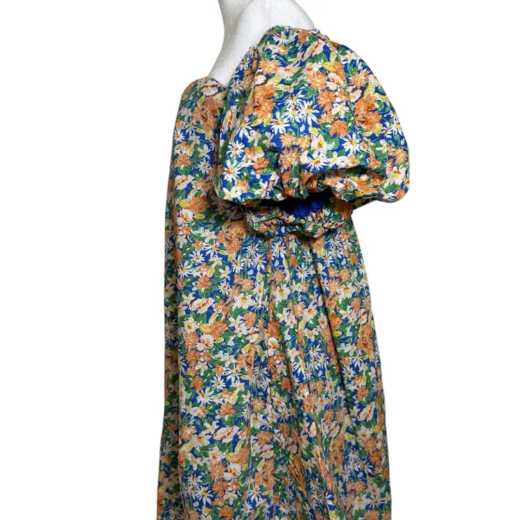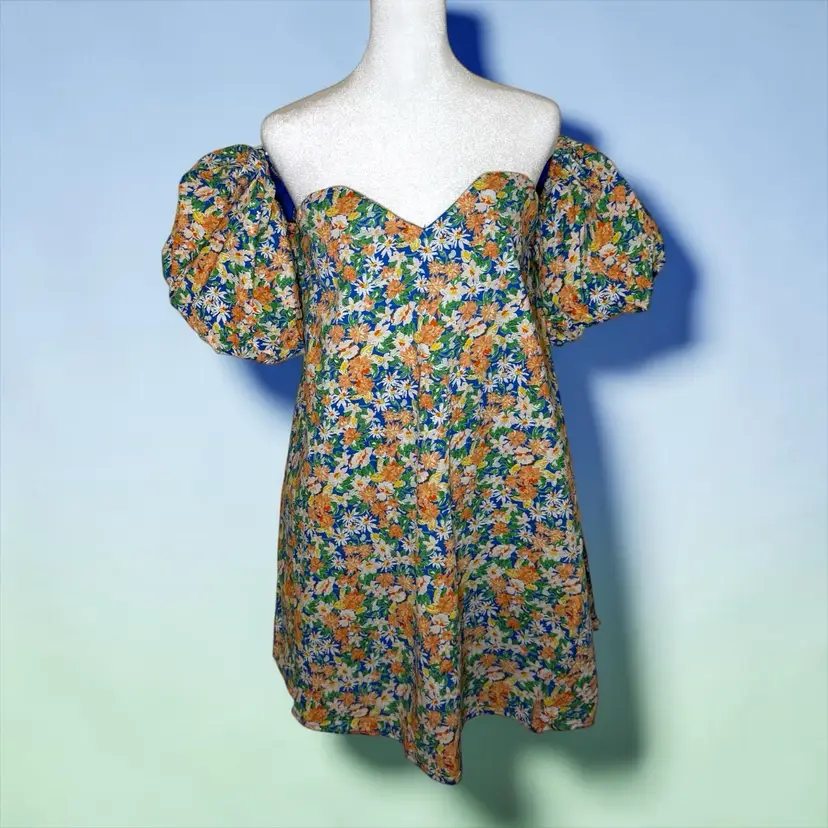 The Anthropologie MABLE Mini Dress is a beautifully designed floral dress that exudes a romantic and feminine vibe. With an off-shoulder neckline, puff sleeves, and a zip closure, this dress is perfect for both party and casual occasions. Made from a comfortable combination of rayon and cotton, this gorgeous dress features a colorful floral pattern, giving it a cottagecore feel. The babydoll style, with huge puff sleeves and a short length, adds to the bohemian and garden party theme, making it an ideal choice for spring, summer, and fall events.