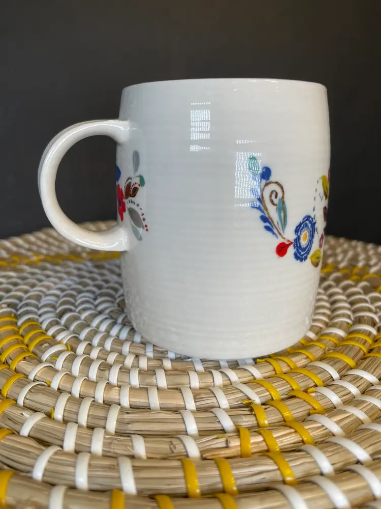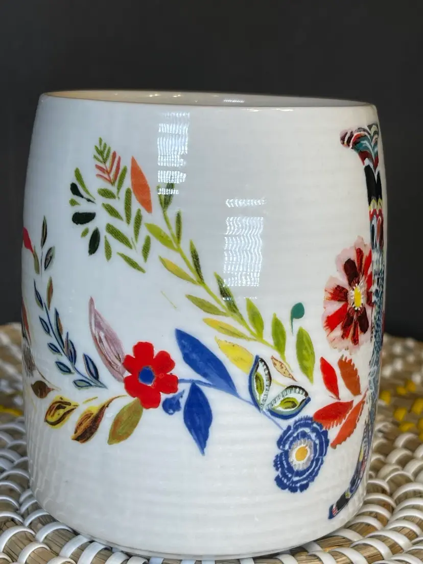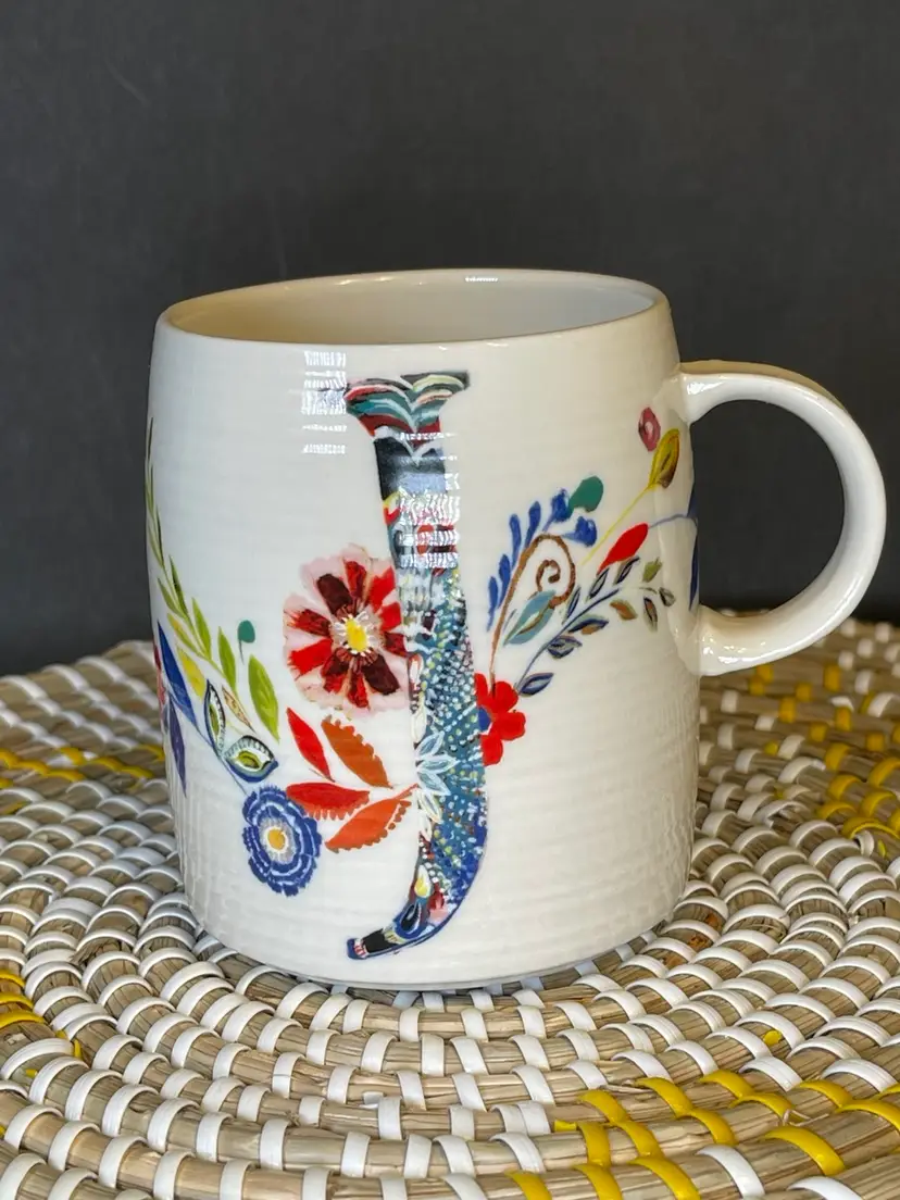 The mug comes from the Anthropologie franchise and is part of the Petal Palette collection designed by Starla M. Halfmann. The initial 'J' makes this coffee cup a great personalized gift for all occasions. It is a lovely addition to any collection and a must-have for coffee lovers.