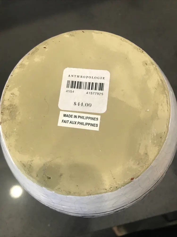 Anthropologie Nauria Terra-cotta Vase White/ Grey Heavy