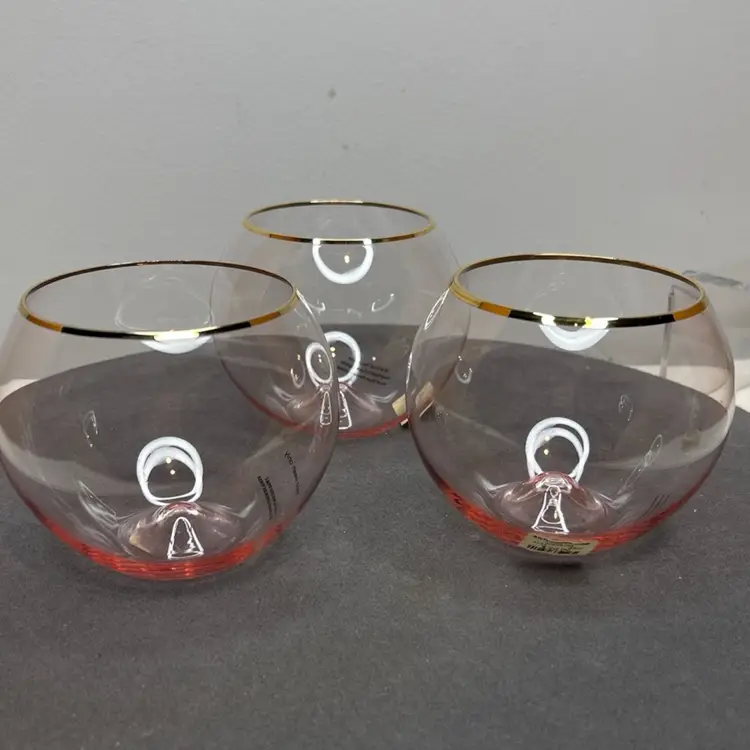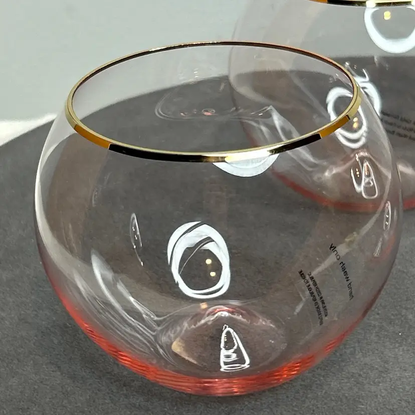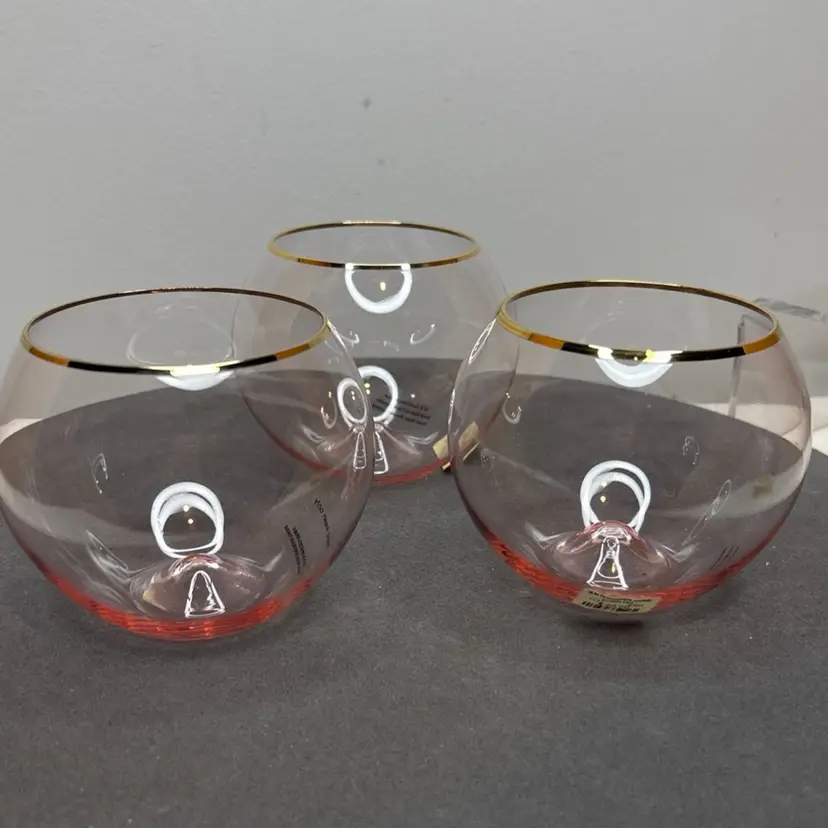 Anthropologie NEW Pink 24kt Gold Gilded Stemless Wine Glasses Lot/3 ~ these are in excellent "NEW" condition, with NO chips, cracks or discoloration. The 24kt Gold Gilt is in excellent condition, and most have their original Anthropologie tags. Please review all pictures for proper assessment of their excellent "NEW" condition.