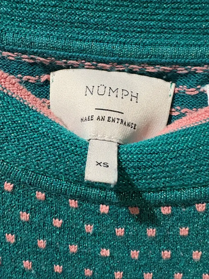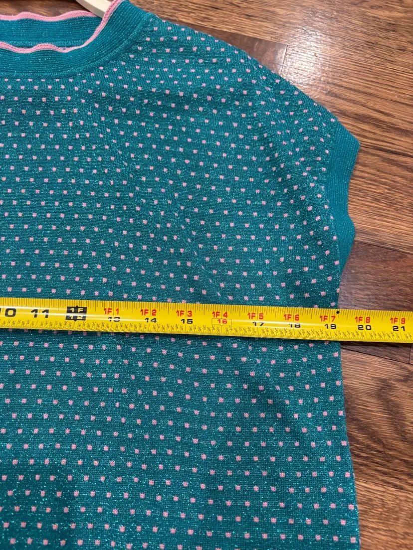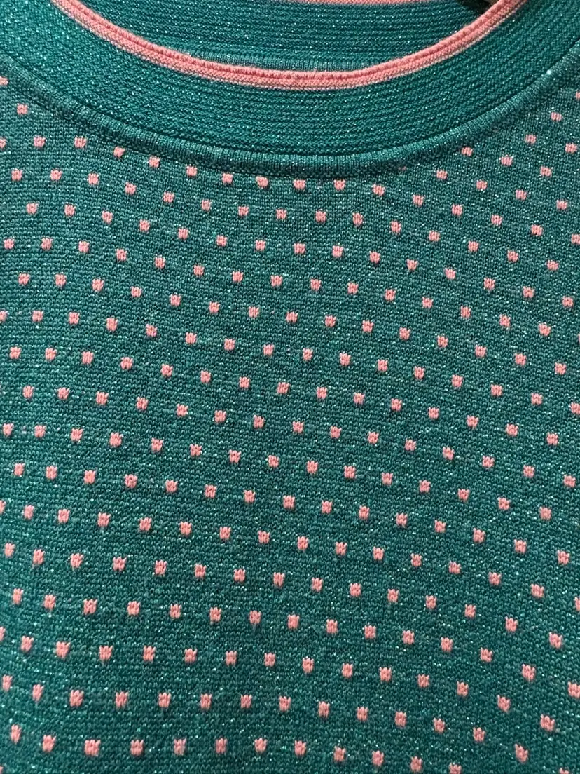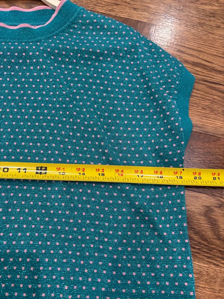 Anthropologie Numph Short Sleeve Top/Sweater Green / Metallic Pink Polka Dots XS